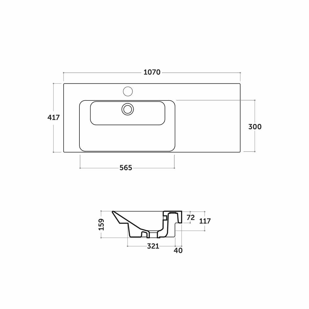 Moderne bordplade vask venstre vægindsats i keramisk Maida
