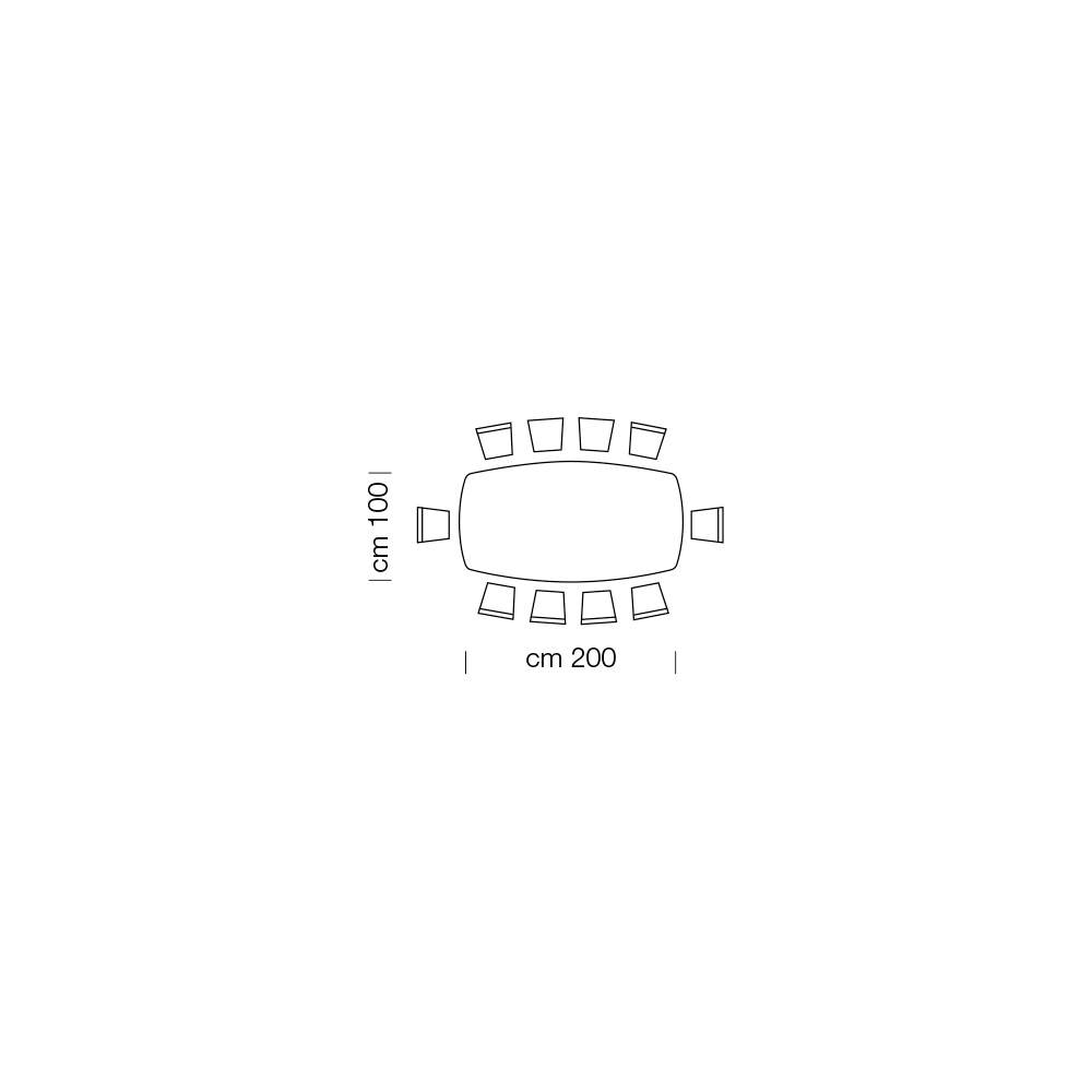 Foranstaltninger- L 200 x D 100 x H 73 cm 10 sæder;