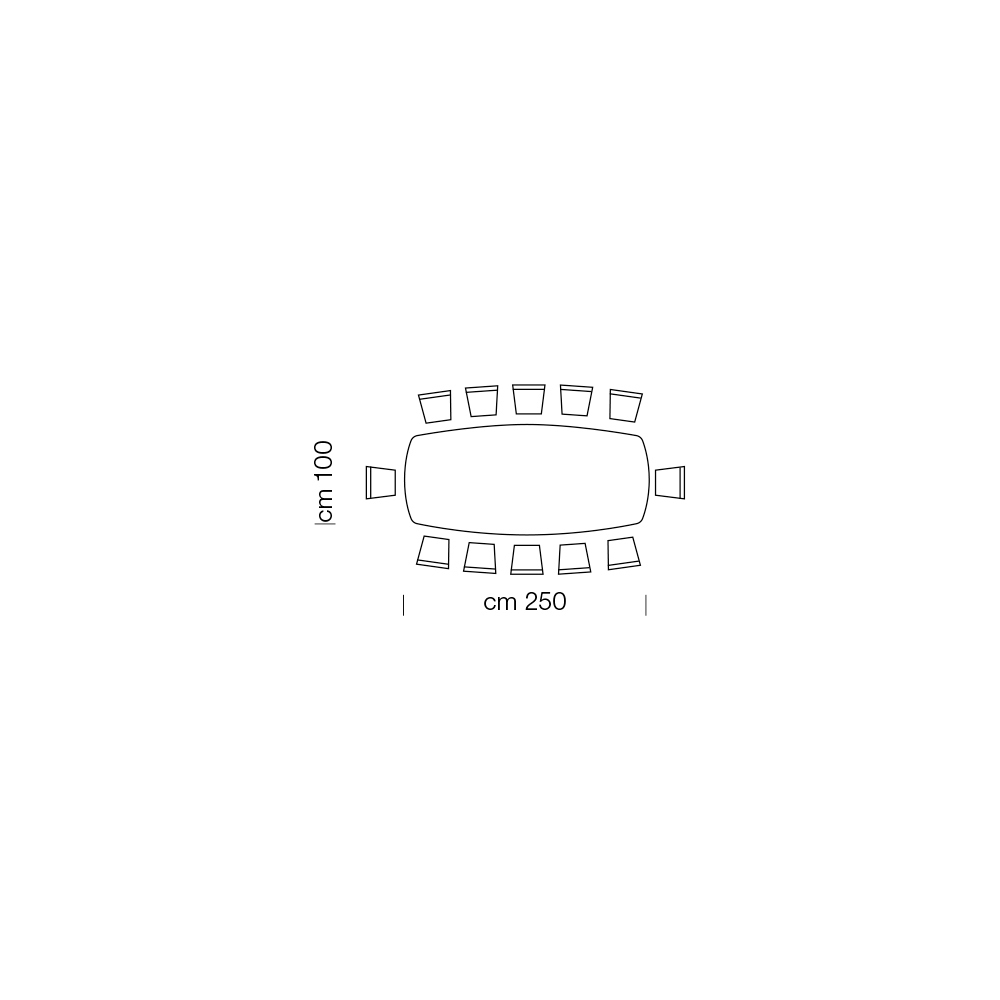 - L 250 x D 100 x H 73 cm 12 sæder.