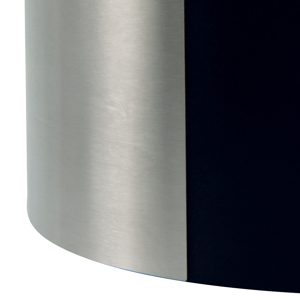 Denne bjælkeholder i metal er en fejlfri blanding af moderne funktionalitet og industriel stil. Dets cylindriske design forstærkes af kombinationen af to finisher: varmen fra sort metal kombineret med stålets elegance, hvilket skaber en visuel kontrast, der fanger opmærksomheden og forbedrer det omgivende miljø.