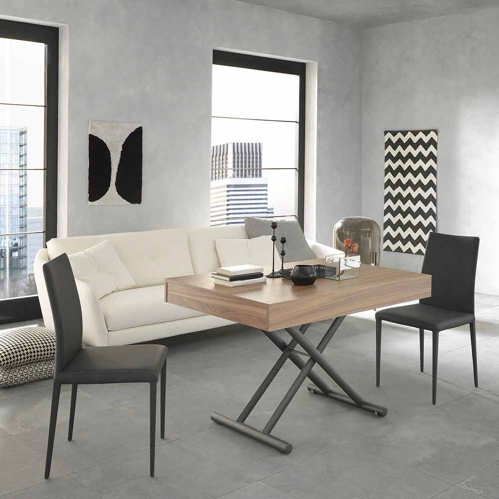 sofabord til et bord til spisestuen eller køkkenet takket være en gasmekanisme, der kan justeres i højden til millimeter fra 28 cm til 80 cm.