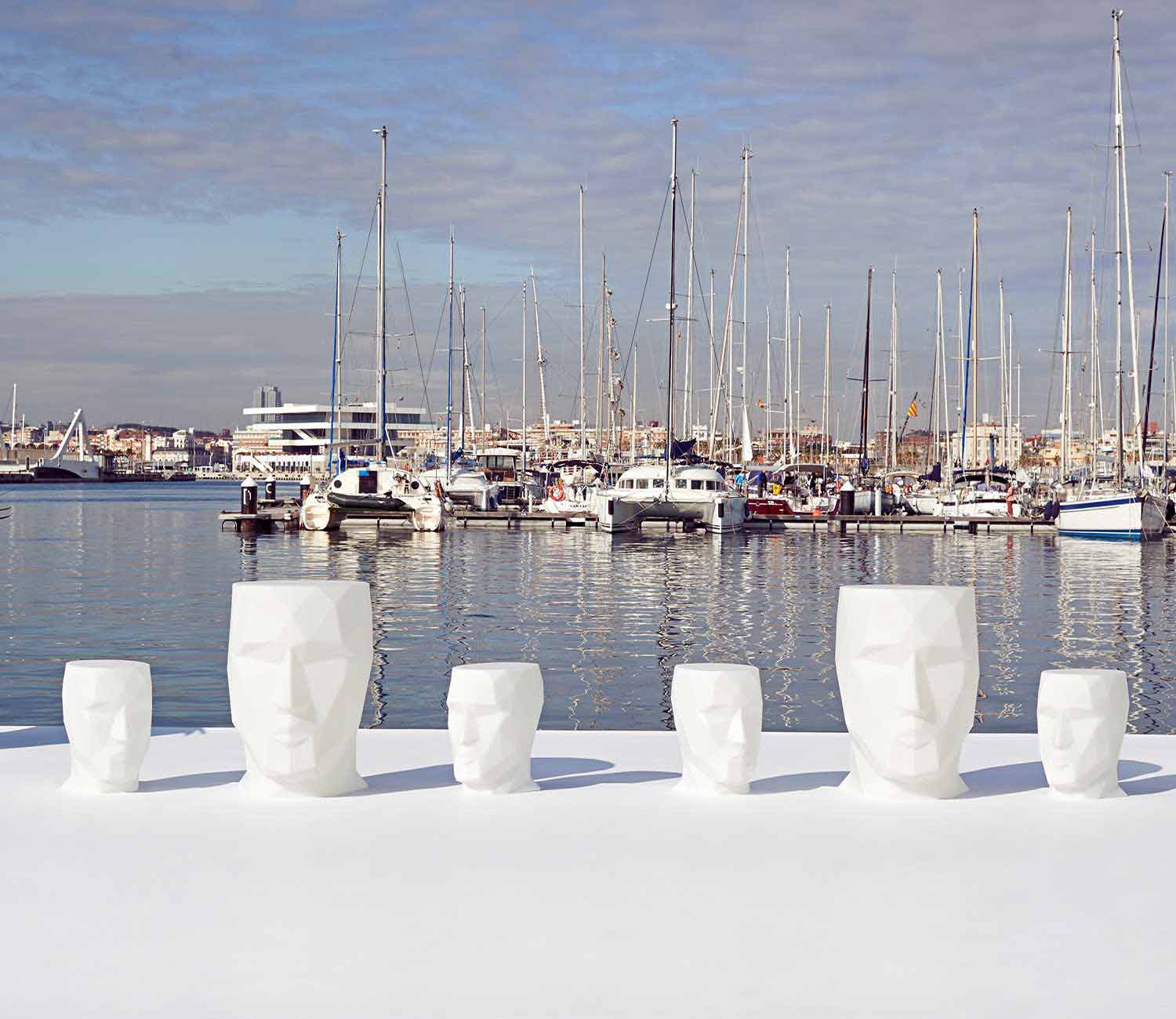 Ansigtsformet udendørs bord Adan-samling af Vondom, designer Teresa Sapey