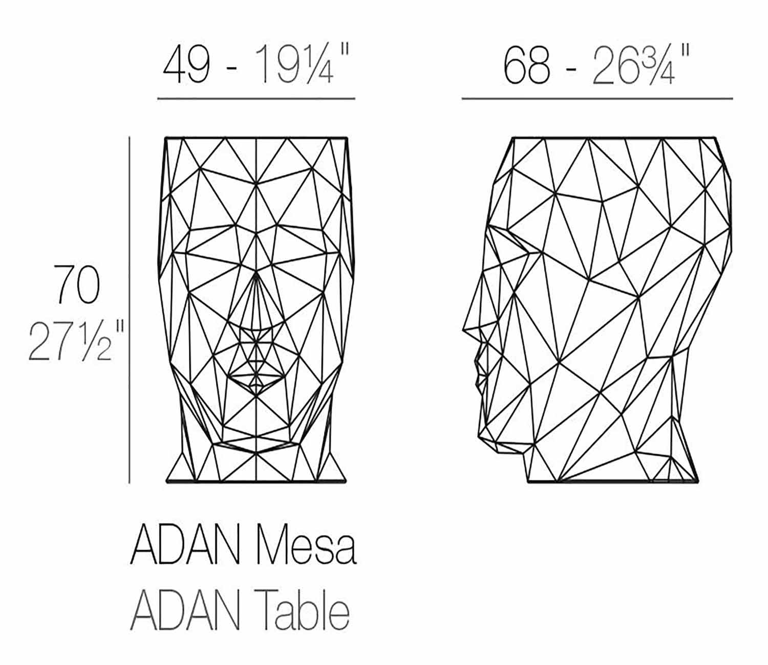 Adan-samlingen er designet af designeren Teresa Sapey, med denne linje overrasker det os, da objekterne har form af et ansigt og linjerne minder om en diamant. Samling med stor personlighed, snarere end objekter, er stykker af multifunktionel arkitektur. De er livsstilsobjekter, der skaber en fornemmelse, de tilpasser sig enhver stil og er lavet af materialer, som giver mulighed for både ekstern og intern brug.