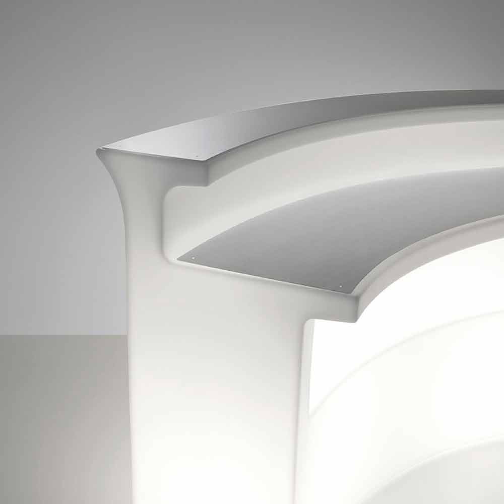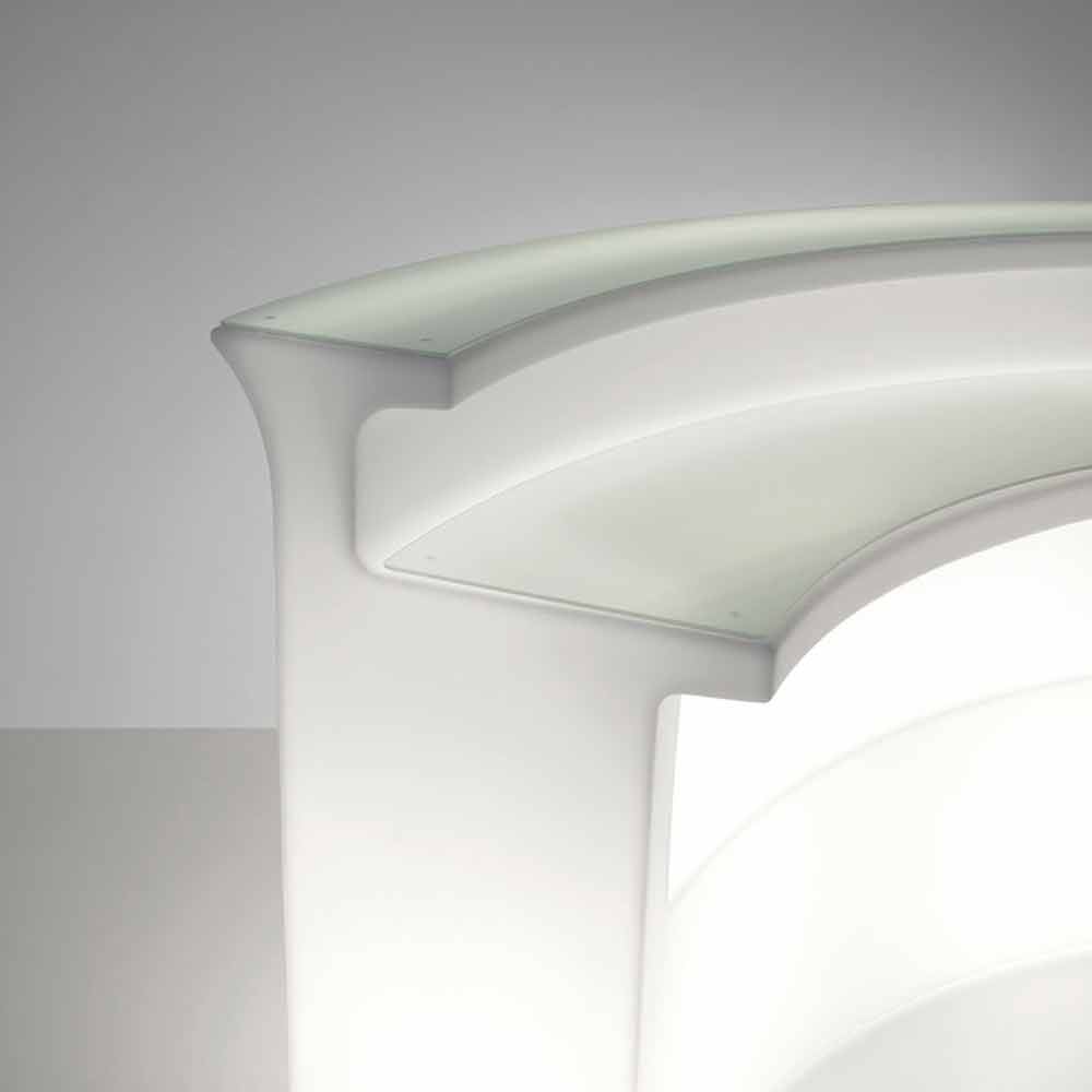 Den er lavet af lys hvid polyethylen og er ideel til brug som bardisk eller som receptionshjørne. Kan bruges både individuelt og i kombination med andet møbeltilbehør fra Break Corner og Break Line linjerne. Takket være sin originalitet er den i stand til at gøre forskellen som et unikt produkt, der er i stand til at bryde formen i traditionelle miljøer.