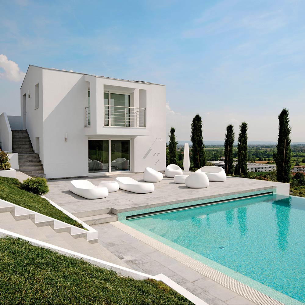 polyethylen , der fås i den uigennemsigtige version, der er kendetegnet ved fremragende modstandsdygtighed over for sol, stød og varme eller i den modstandsdygtige og lystlakerede version, der giver dig mulighed for at skabe leg af lys og refleksioner. Takket være sit unikke og innovative design formår det at kombinere funktionalitet og funktionalitet uden at forsømme det visuelle og designaspekt.
