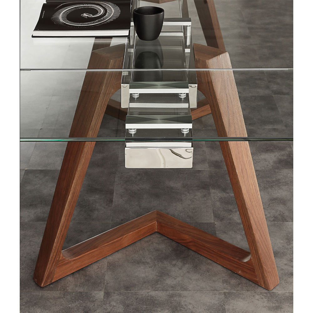 Dette udtrækkelige bord er indbegrebet af elegance og praktisk , et sandt kunstværk af moderne design. Den krystallinske gennemsigtighed af dens hærdede glasplade giver et glimt af skønheden i dens underliggende struktur, en perfekt kombination af funktionalitet og stil, der vil fortrylle enhver.