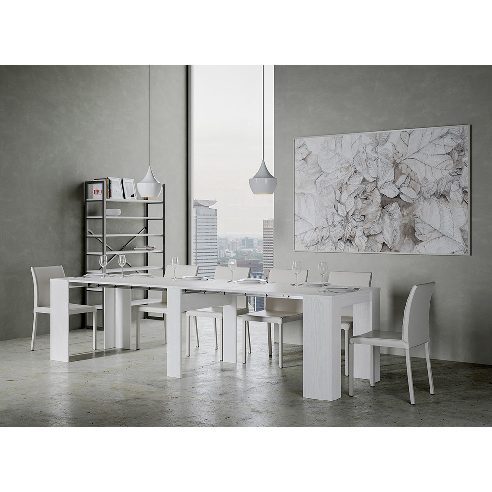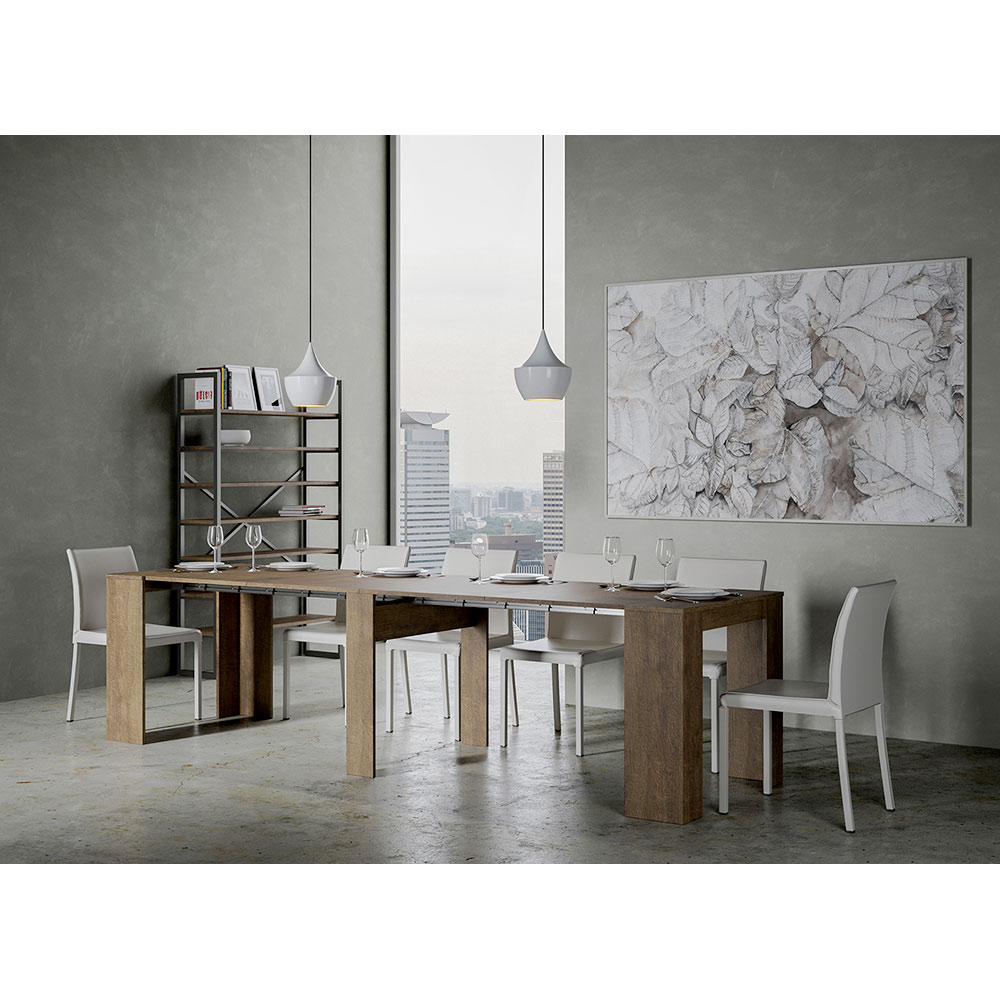Hans funktionelle design omfatter indvendige udvidelser, en detalje, der forbedrer praktiskheden uden at gå på kompromis med stilen: Med blot nogle få bevægelser forvandles konsolbordet fra en elegant opbevaringsenhed til et rummeligt bord, klar til at byde gæster velkommen til mindeværdige middage eller fungere som en stor arbejdsflade.