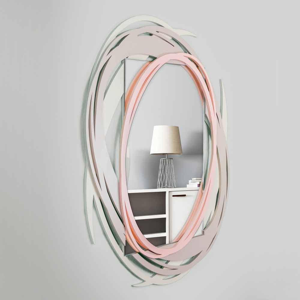 Moderne design vægspejl i farvet lakeret træ, stort og dekorativt, lavet i Italien.