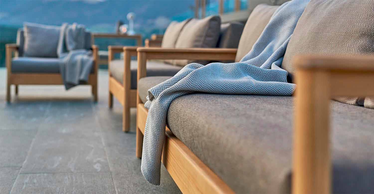 Varaschin Bali udendørs sofa i polstret stof og teak træ