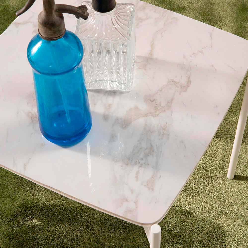 Istrice er et firkantet sofabord lavet med en MDF-top med en keramisk plade på toppen og en metalstruktur.