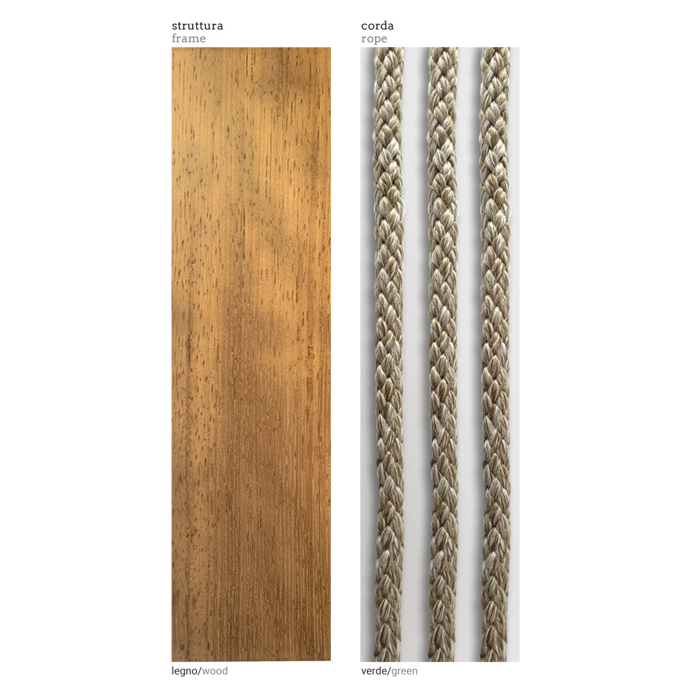 strukturen i iroko-træ og grønne rebvævninger , takket være sin udsmykning, minder om