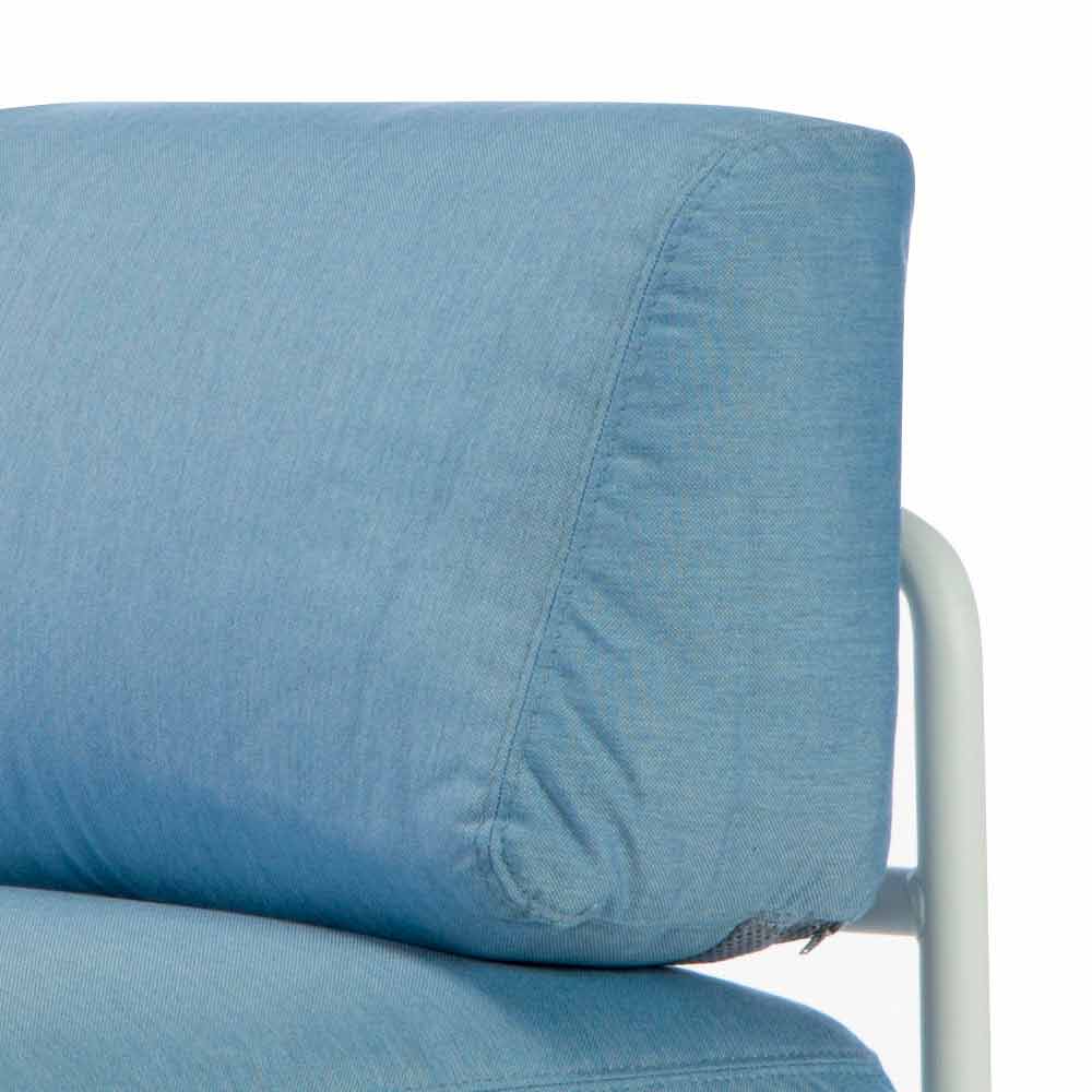 pulverlakeret galvaniseret jern, malet med termohærdende pulver, der er ideelt til fremstilling af udendørsprodukter, mens sæde- og ryghynden er lavet af 100% farvet akrylstof. De to anvendte materialer giver produktet fremragende soliditet og holdbarhed over tid samt