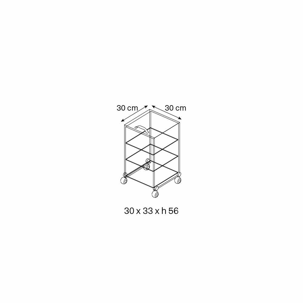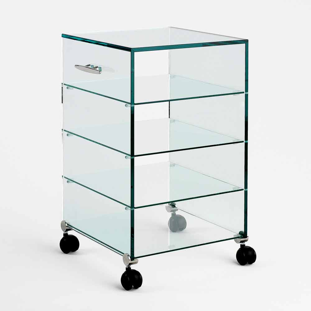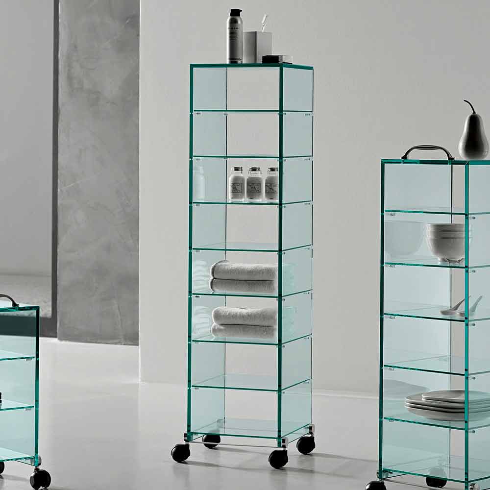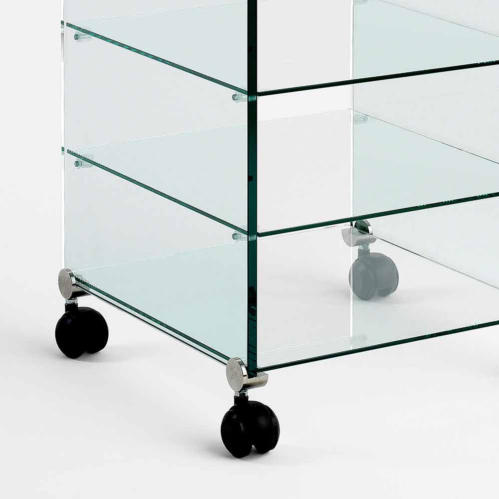 Håndlavet i Italien med materialer af høj kvalitet , er det et fritstående tilbehør på hjul og fås i forskellige størrelser med 3, 6, 8 eller 10 hylder.