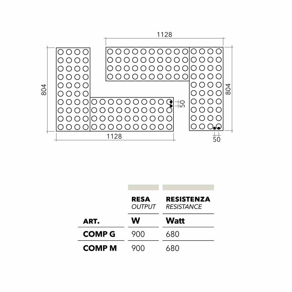 Sammensætning af farvede radiatorer med en moderne og sjov stil i den elektriske version. Et projekt inspireret af et affektivt ikon delt af alle. Flere farvekombinationer til modulære elementer med vandret og vertikal udvikling. Som i et byggespil kombineres elementerne side om side afhængigt af ledig plads og den nødvendige termiske udgang.