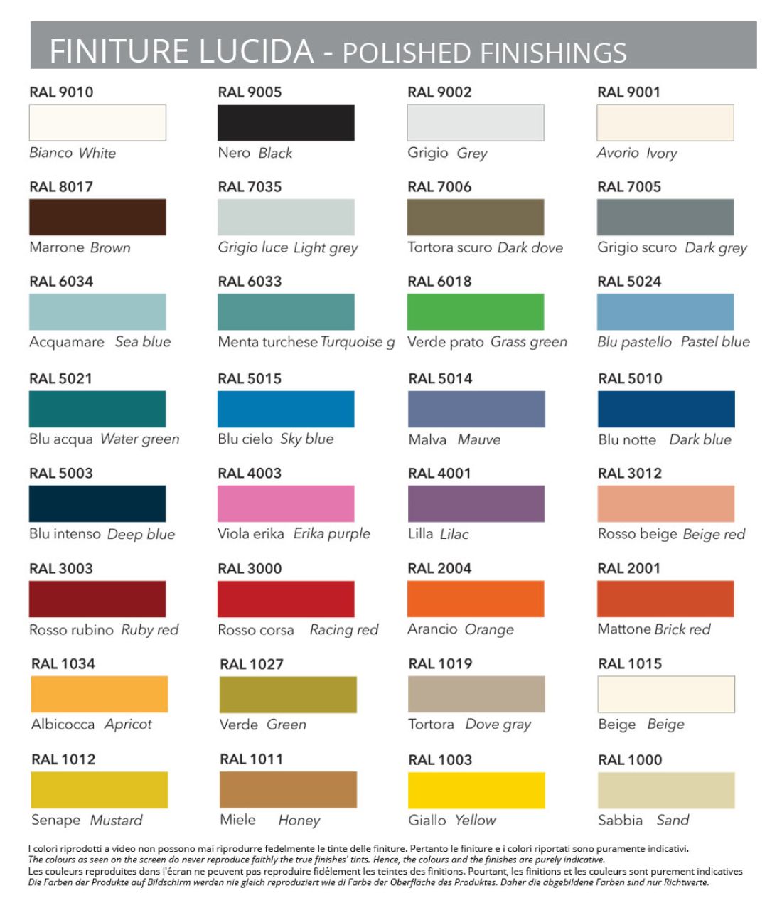 Radiator fås i forskellige farvevarianter: se farvekortet og angiv den ønskede farvekode i den relevante boks.