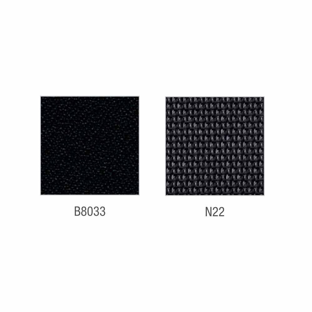 Mina har ryglæn lavet af en bærende ramme i 30% PA6 nylon med glasfiber og en polstring fastgjort til bagsiden af en sidespor.