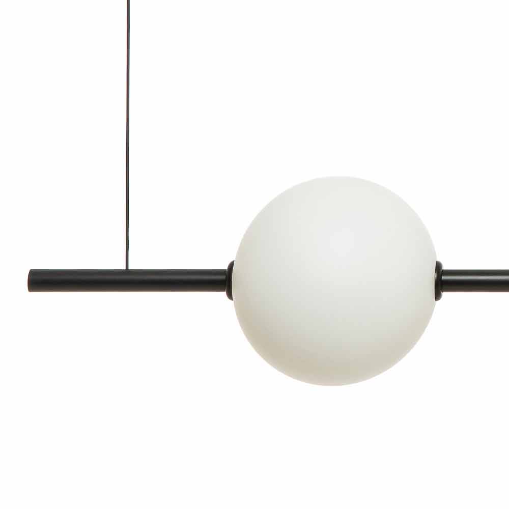lysende kugler fremstår som ophængte, hvilket giver en raffineret og unik atmosfære, ideel til de mest moderne sammenhænge, hvilket efterlader en lysstråle takket være den