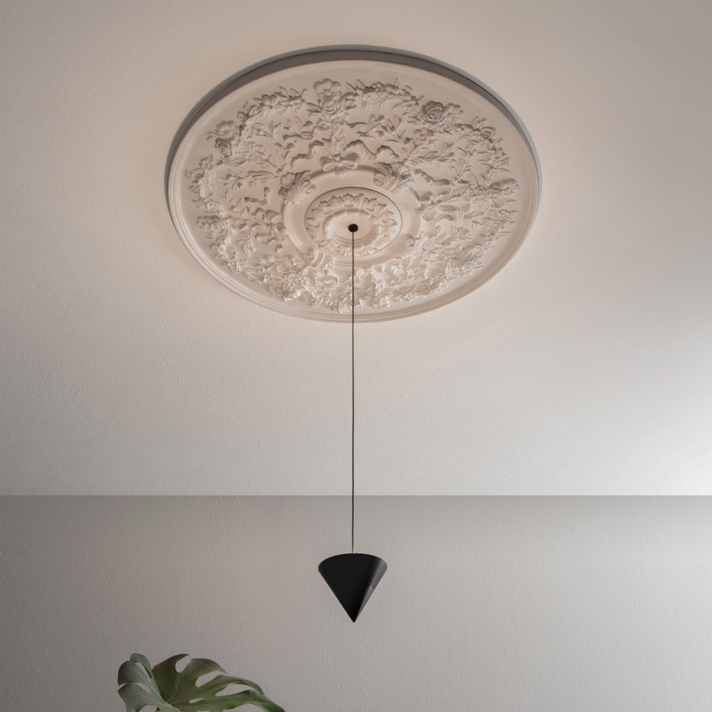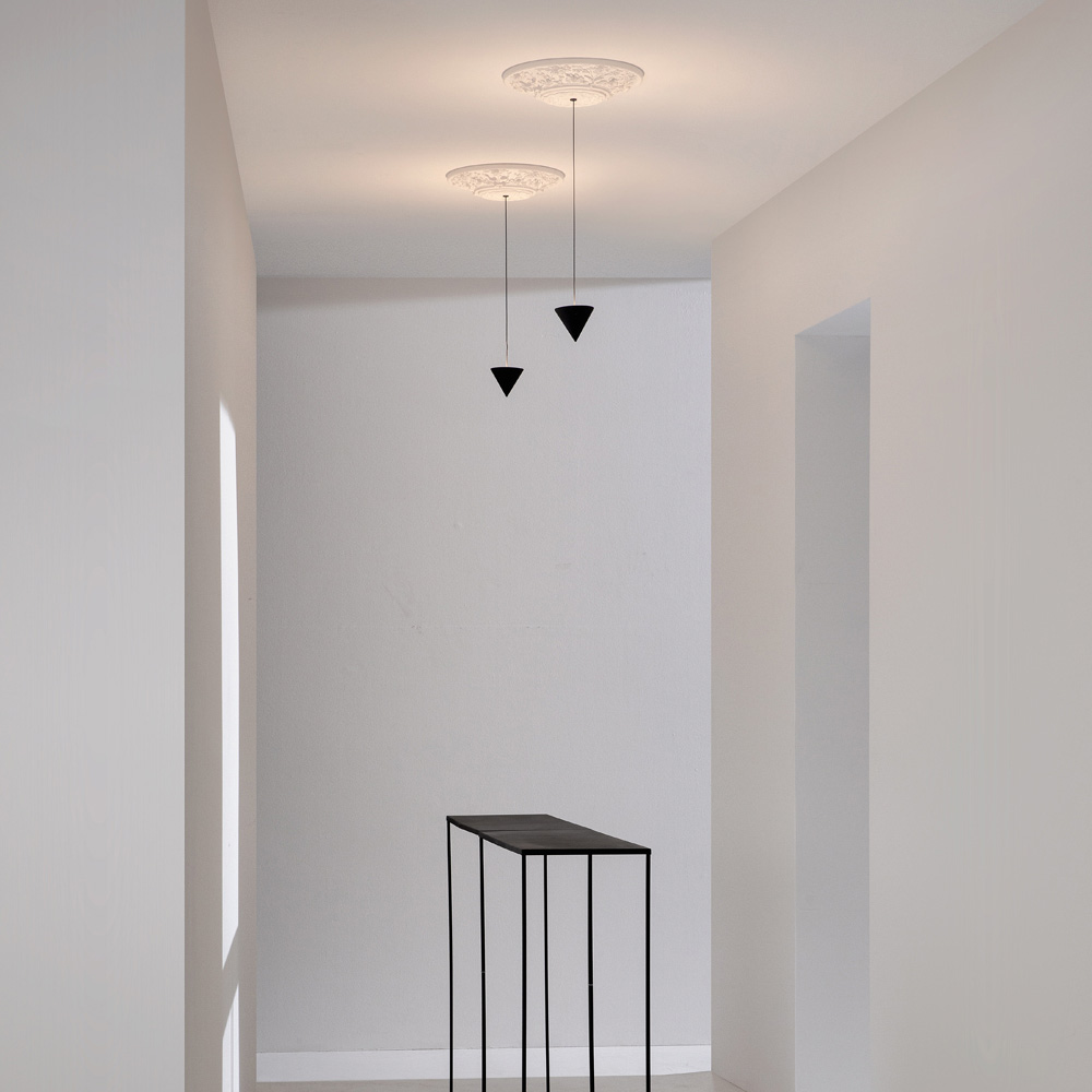 Lampen er lavet med en gips- og aluminiumsstruktur til et helt italiensk design, som gennem ukonventionelle eksperimenter og kontinuerlig forskning mellem tradition og modernitet er i stand til at forbløffe, vove og begejstre, så du kan udtrykke dine følelser gennem en original og personlig dekorativ brug af lys.