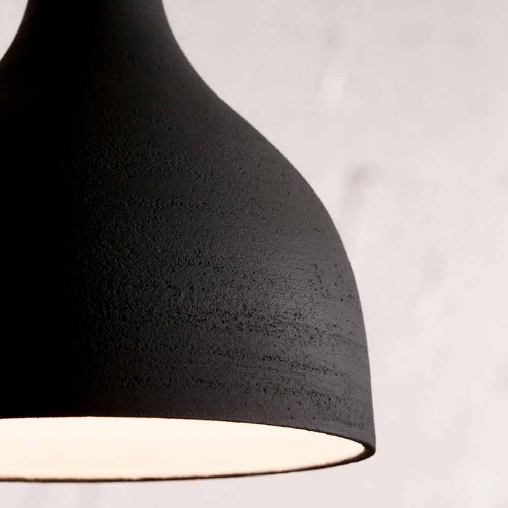 Lampen er lavet af mat antracitstentøj, et sammensat kontinuitetsmateriale, der adskiller sig fra keramik for større modstandsdygtighed over for atmosfæriske stoffer, ild og termiske stød. Hvid emaljeret interiør.