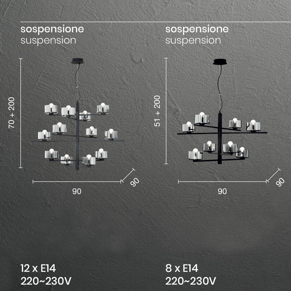 - L 90 x P 90 x H 251 cm (8x E14 220-230V).