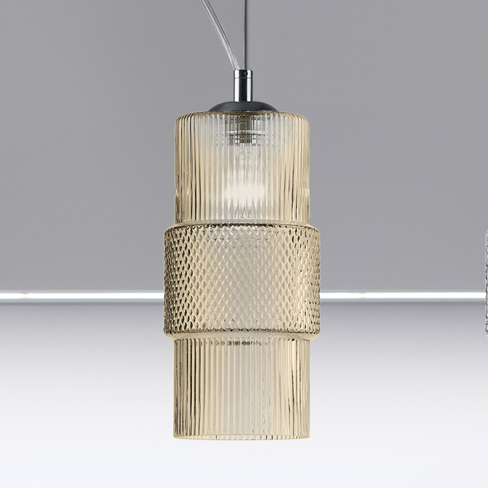 lagdelt eller transparent glas med stribet bearbejdning præget af en romantisk æstetik og i stand til at give fascinerende belysning sammen med hidtil usete lysspil.