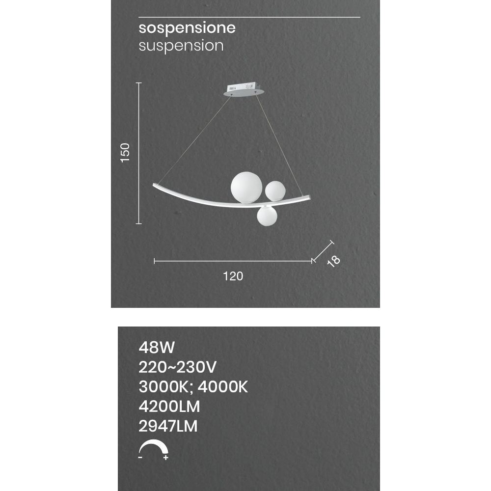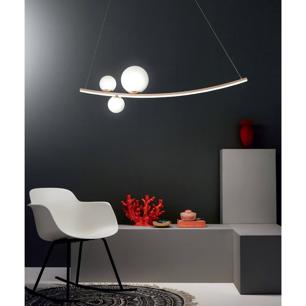 eksklusivt og personligt præg. Med muligheden for at justere højden hurtigt og nemt takket være kablerne kan denne lampe tilpasses enhver situation og ethvert miljø for at opnå et unikt og avantgardistisk resultat.