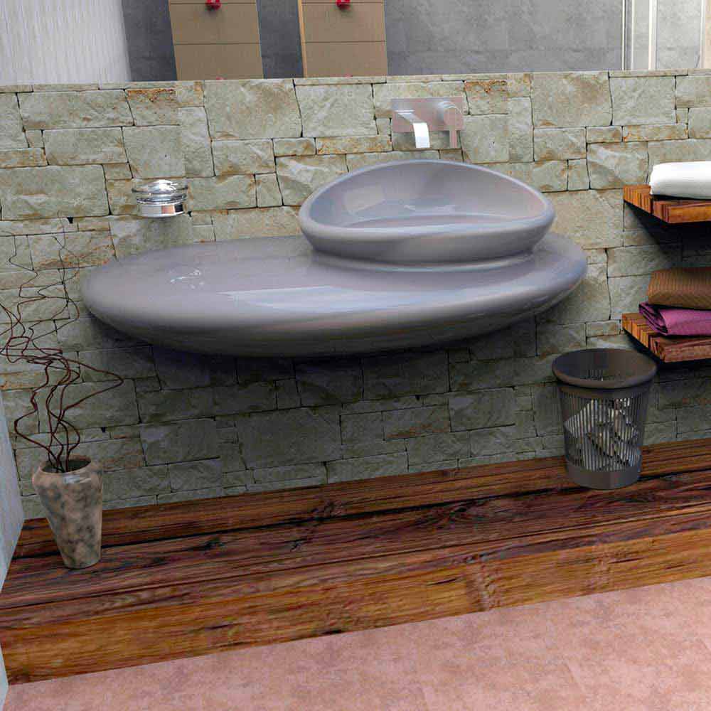 Finishen af Solid Surface-materialet; får håndvasken til at fremstå i den søde form af flodsten. Blank lakeret finish.