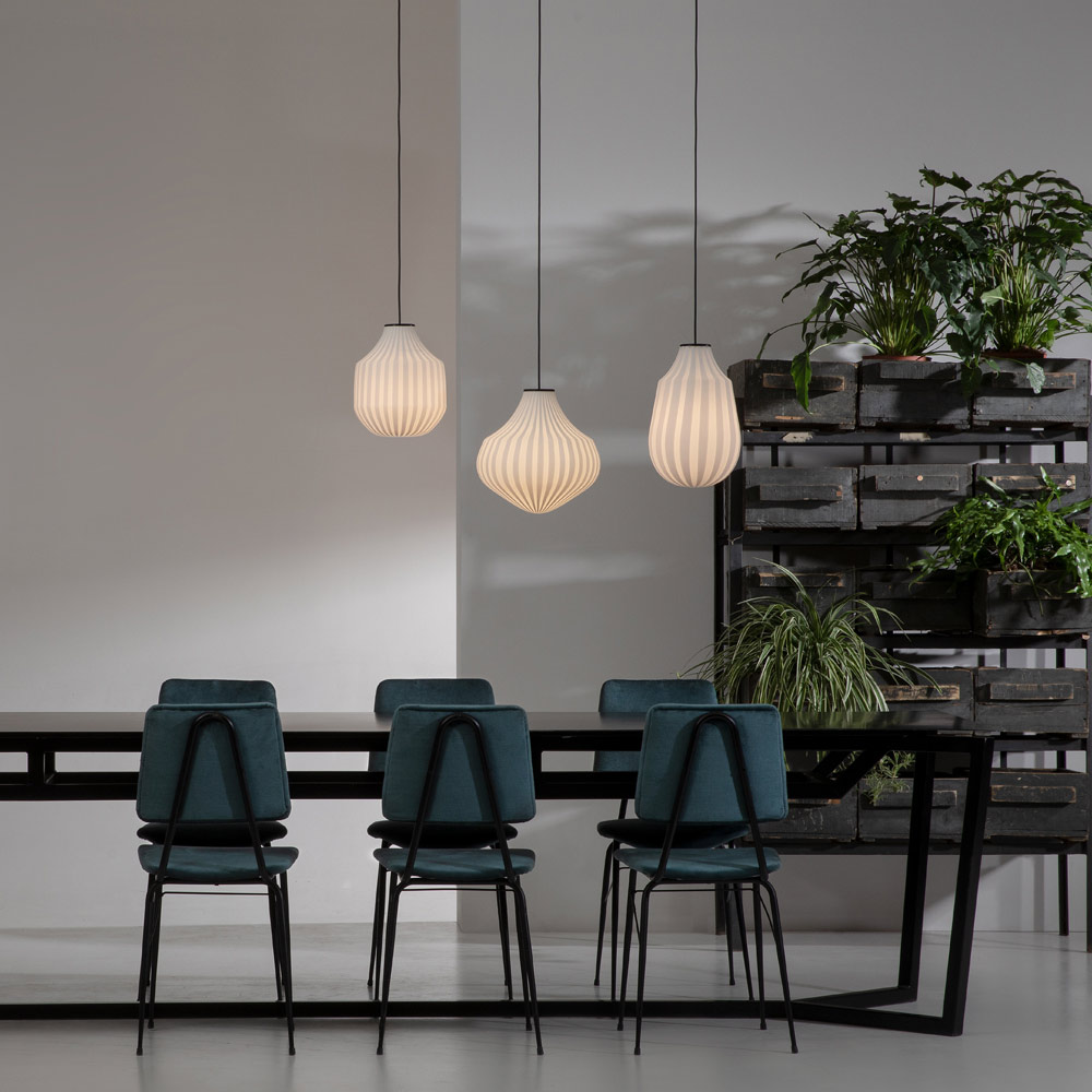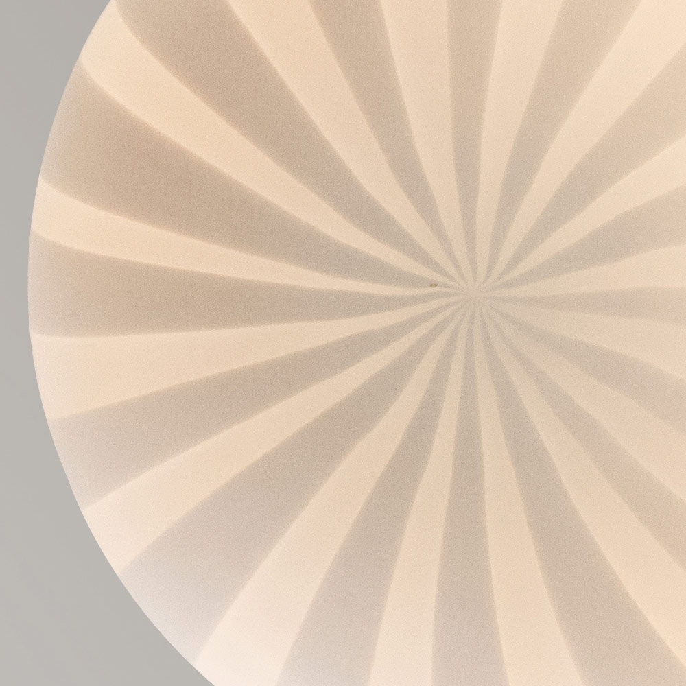 Lampen er lavet med en hvid filigran glas diffuser gennem håndværk , et materiale, der giver glans og modernitet til lyset, som passerer gennem det og skaber sublime og engagerende atmosfærer, og en aftagelig aluminium base.