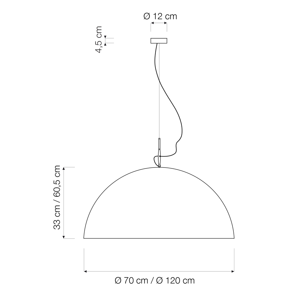 - Ø 120 cm 60,5 (h) cm Roset: Ø 12x4,5 cm, pære E27 max 100W / rek. 20W LED'er.