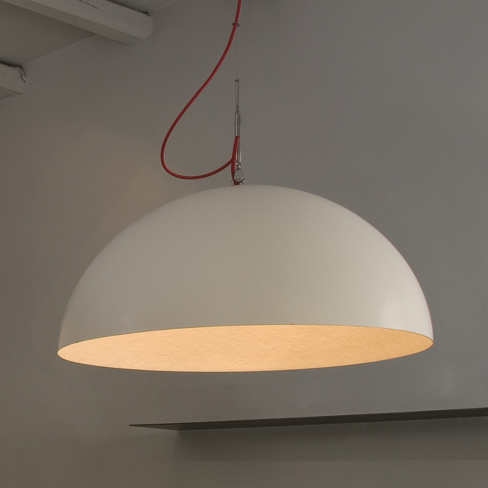 Lavet med omhu og opmærksomhed på alle detaljer, for at genskabe en magisk måneatmosfære; er den indvendige del af lampeskærmen lavet af Nebulite, et materiale sammensat af harpiks og fiber, hvis årer giver lampen denne særlige effekt. Ydersiden af lampeskærmen i lapren og stål skaber en interessant kontrast til indersiden.