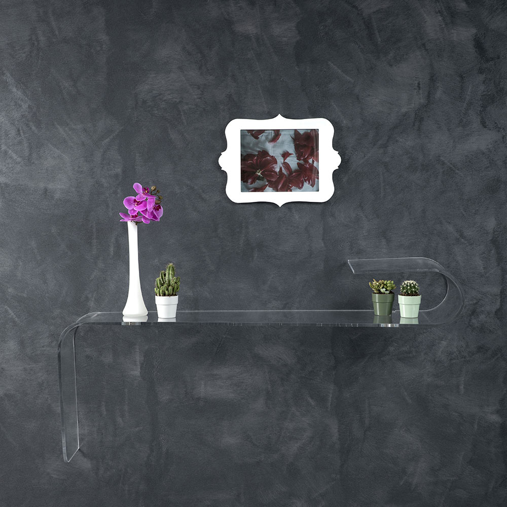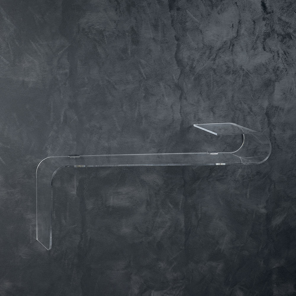 Vægkonsol i transparent akryl laserskåret og foldet i håndlavet i Italien.