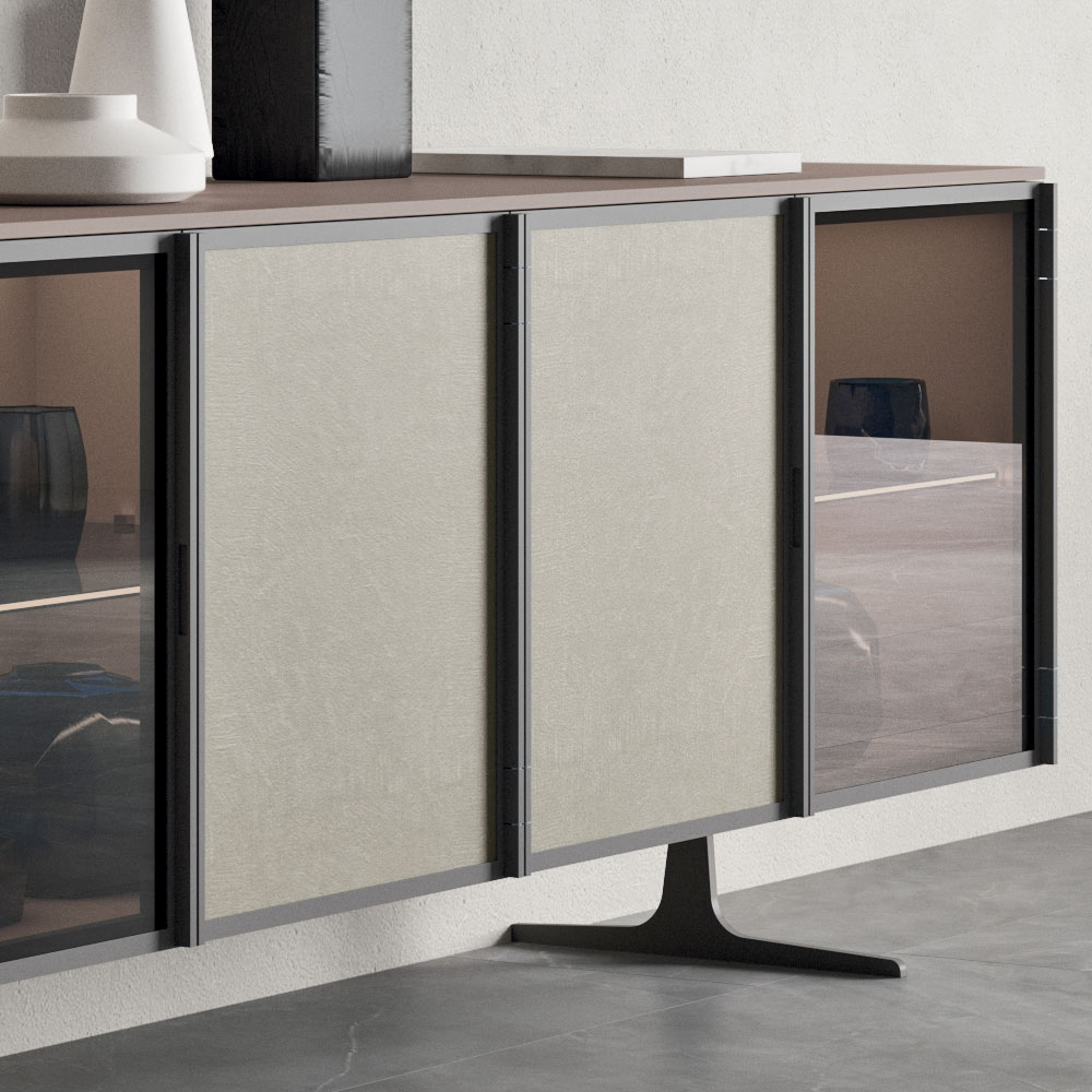 4-dørs skænk til stue i økologisk træ og bronzeret glas, fremstillet i Italien.