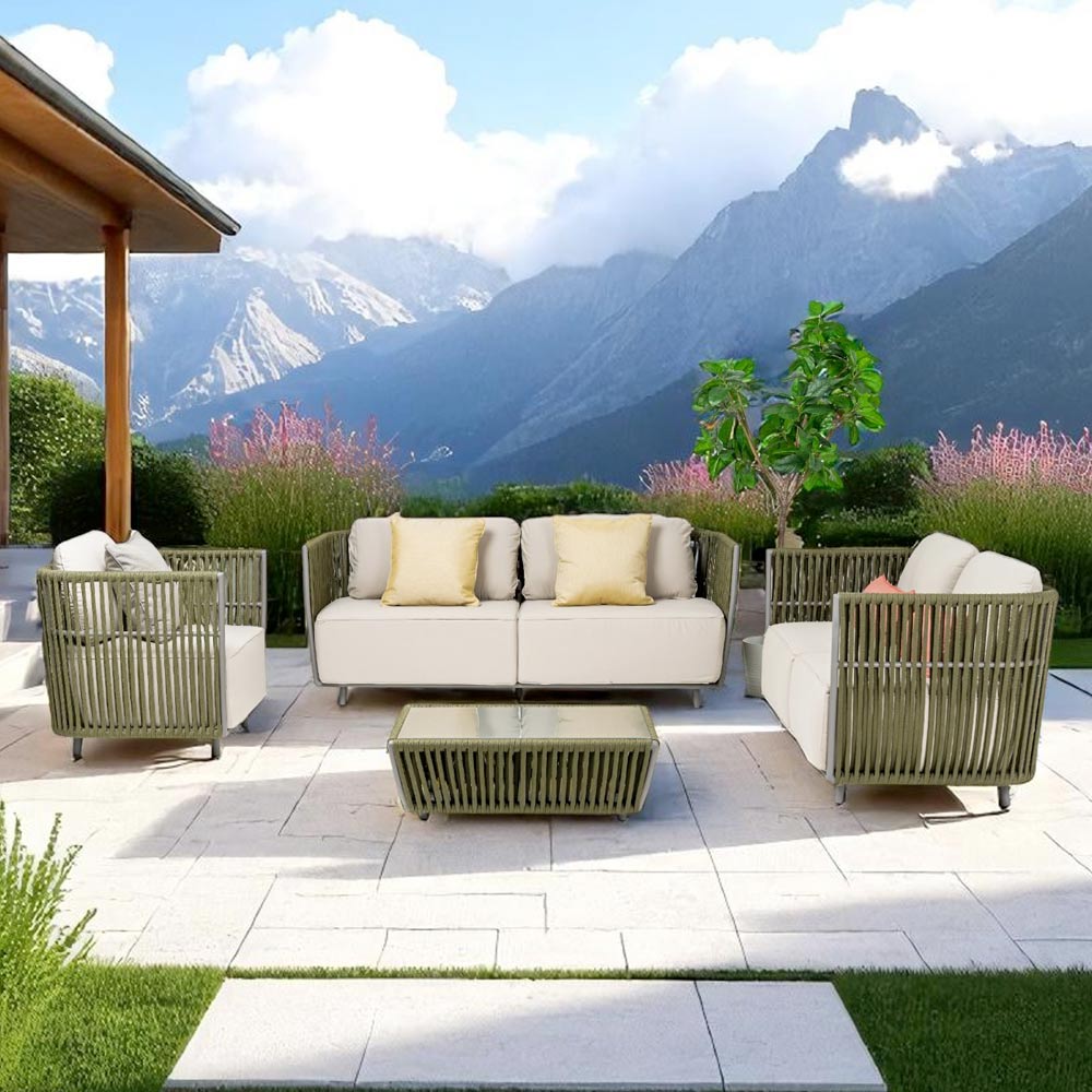 Takket være brugen af særlige materialer af høj kvalitet garanterer denne udendørs lounge udmærket modstandsdygtighed over for vejr, snavs, støv og pletter.