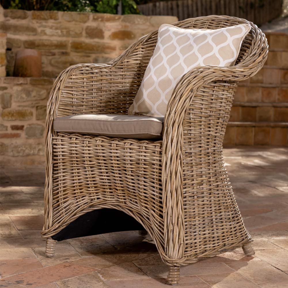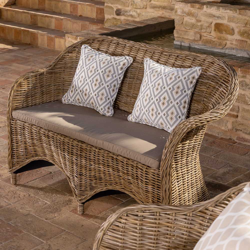 Udendørs loungesæt bestående af 2 lænestole , sofa og sofabord i håndvævet kubu med standard sædehynder inkluderet i standard "grå"-finish. Kubu er et naturligt materiale blandt de mest resistente blandt dem, der findes i naturen, men som altid forbliver meget let .