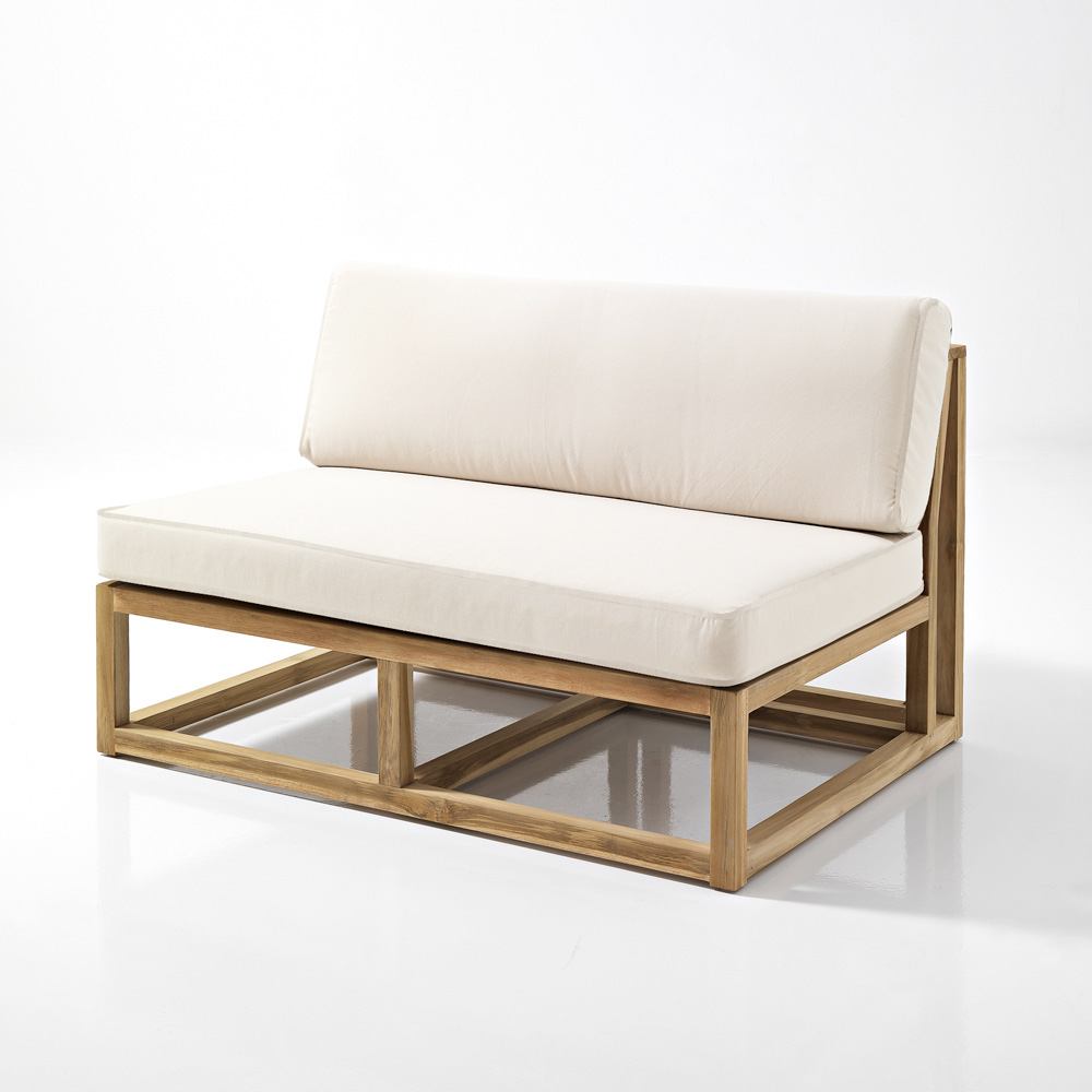 naturligt teak. Forestil dig, at du sidder i dette modulære havesæt, der kombinerer dygtigt håndværk med moderne design. Hvert element, fra rammen i naturligt teaktræ til de rene, moderne linjer, er designet til at skabe din egen personlige oase. Teaktræ, der er kendt for sin styrke og holdbarhed, sikrer, at dette sæt bliver en permanent del af dit uderum, ældes med ynde og bliver endnu mere attraktivt med tiden.