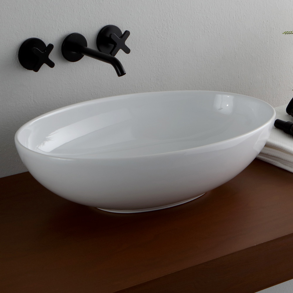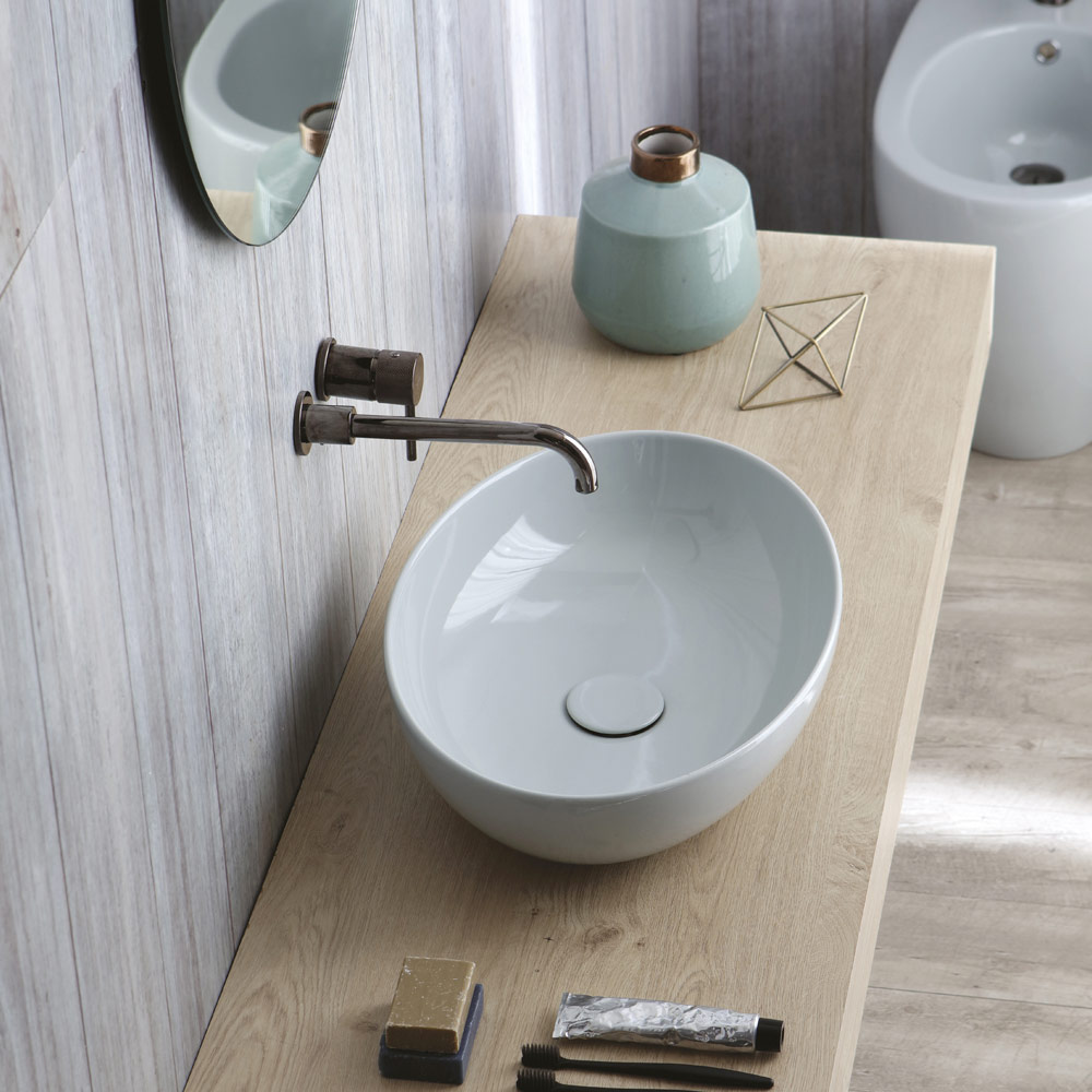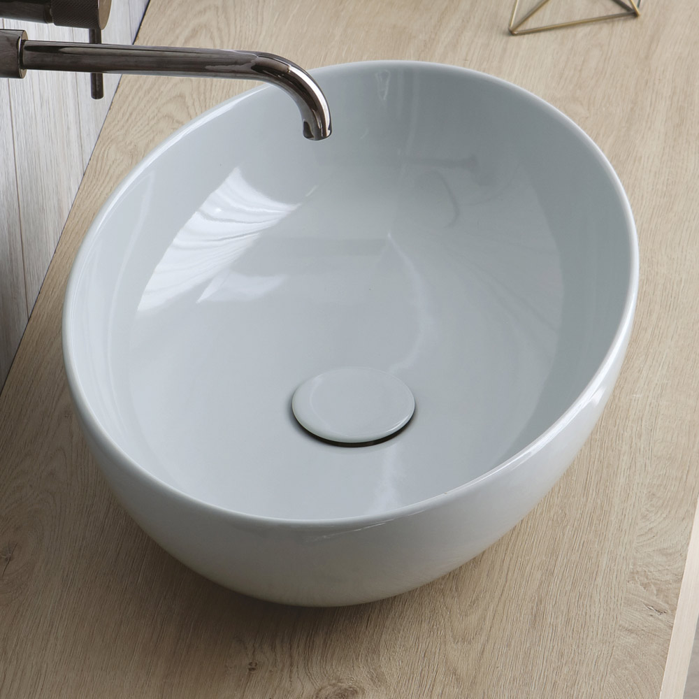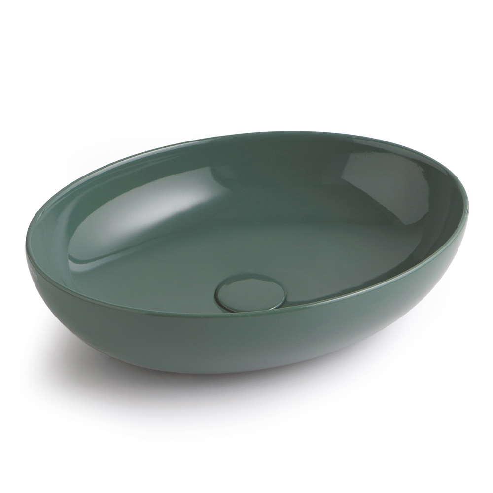 Oval håndvask i bordplade i farvet keramik med blank finish fremstillet gennem 100% Made in Italy håndværk . Et produkt med en moderne smag og alsidig æstetik designet og skabt til at indrette badeværelsesområder med en minimal stil, hvor det fuldender udseendet med et strejf af personlighed og karakter . Dens enkle design og harmoniske linjer tilpasser sig perfekt til enhver stilistisk situation, beriger de omgivende møbler med et kreativt præg og bliver dermed rummets sande hovedperson.