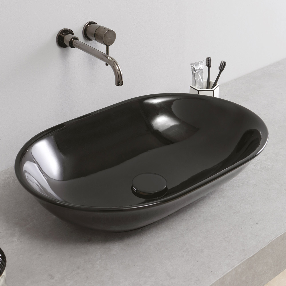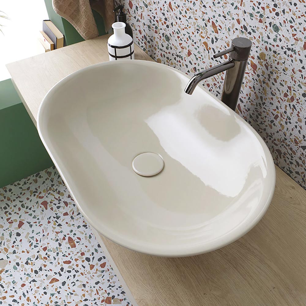 Bordplade håndvask med oval form i farvet keramik med blank finish lavet gennem en 100% Made in Italy håndværkerproduktion . Bløde og harmoniske linjer kendetegner designet på denne raffinerede badevask med en enkel og alsidig æstetik . Faktisk tilpasser formen sig perfekt til enhver moderne stilistisk kontekst og bringer et eksklusivt præg med sig, der er i stand til at fuldføre indretningen af badeværelset på en unik og avantgarde måde. For at berige håndvaskens æstetik er de vidunderlige farver foreslået, der sikrer et raffineret resultat på trods af en sober og elegant stil .