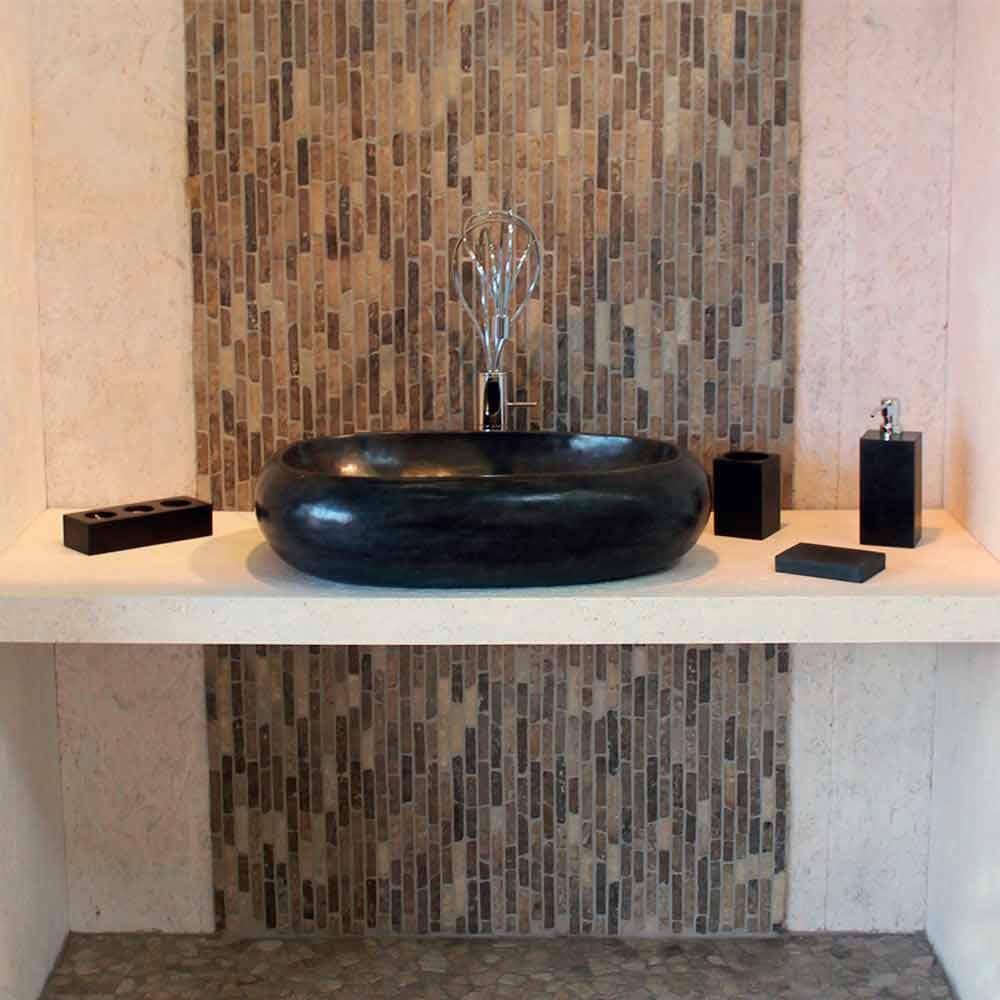 Håndvask i sort marmor Waka tendens til den ovale form (se billeder og dimensioner).