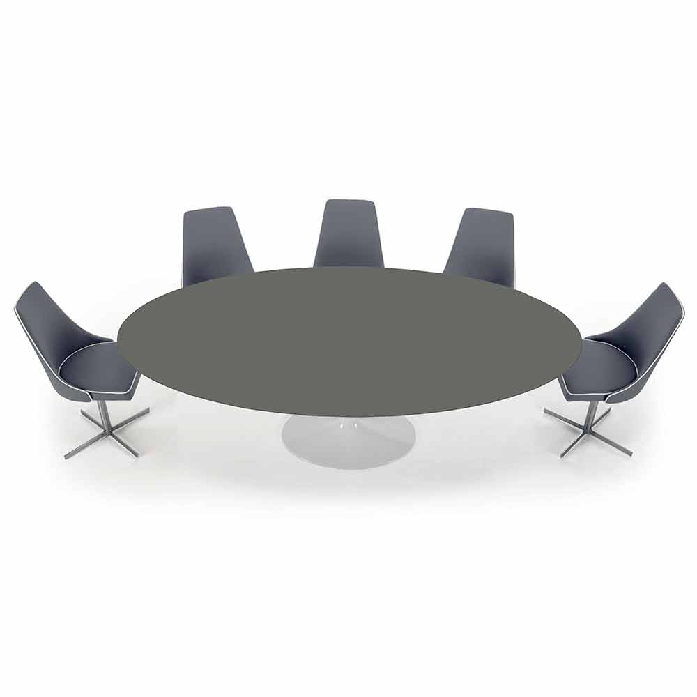 Ovalt spisebord lavet i Italien med fenix-plade og aluminiumsbund.