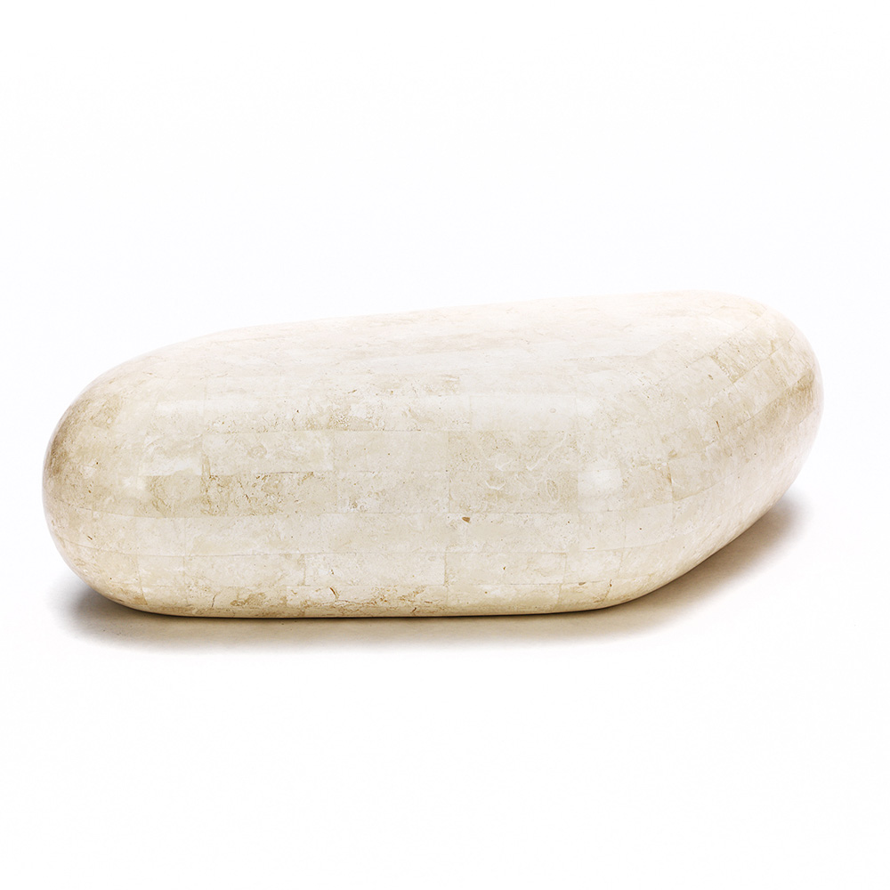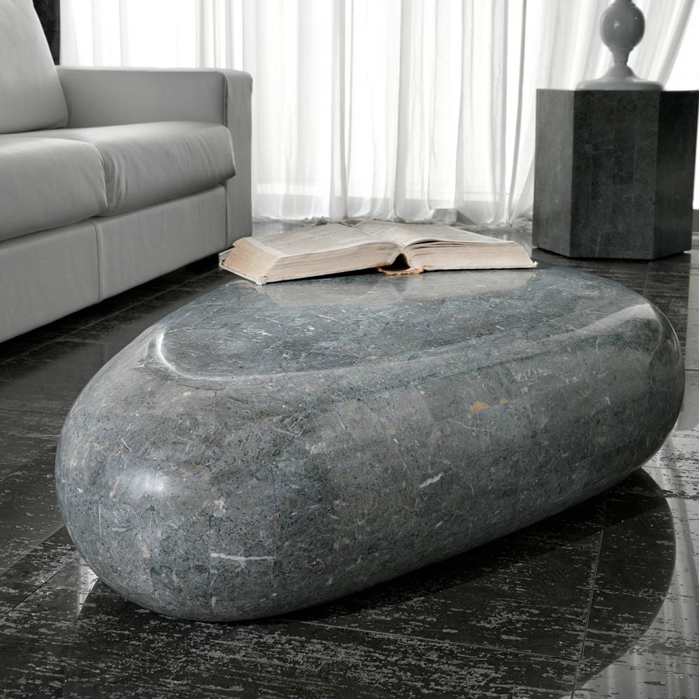 Avenue sofabordet er lavet af en rombformet blok af fossil sten.