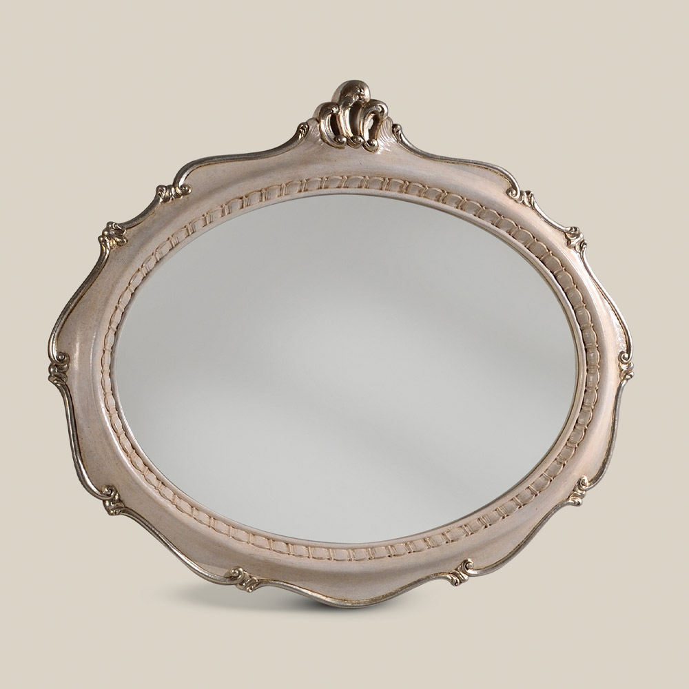 Ovalt spejl klassisk stil i antikt sølvtræ Fremstillet i Italien.