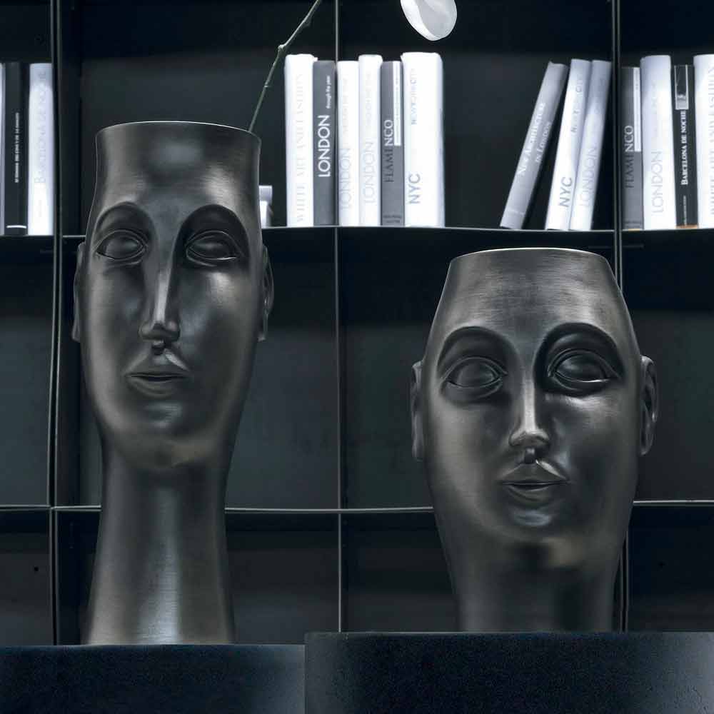 Sammensætning af keramiske vaser i form af et ansigt, fremstillet i Italien.