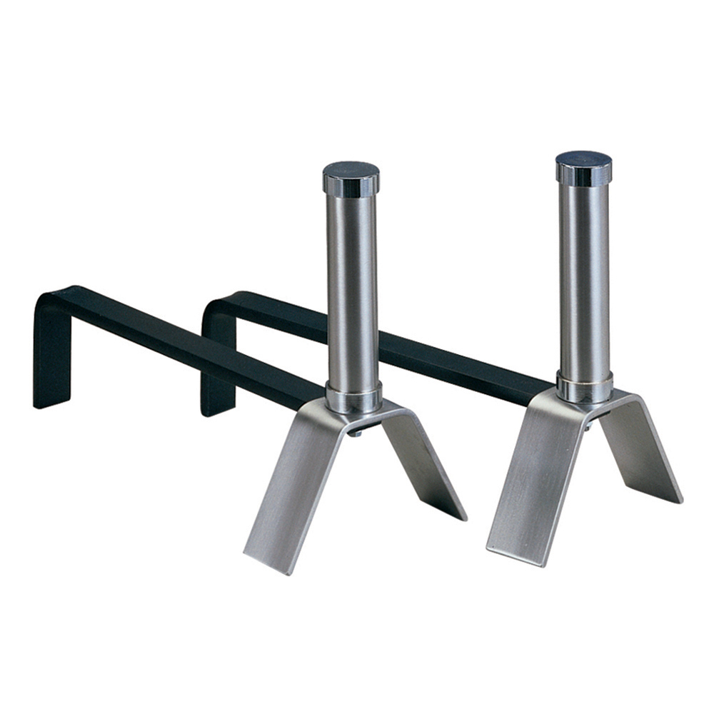 Disse andirons er robuste, men elegante, designet til at modstå den høje varme og vægten fra tættere træsorter, hvilket sikrer en sikker og pålidelig opvarmningsoplevelse. De er det perfekte valg for dem, der ønsker en indbydende atmosfære uden at give afkald på moderne æstetik. Deres udseende og børstede stål integreres harmonisk med enhver type pejseindsats, hvilket bringer et strejf af glans og modernitet til den traditionelle knitrende flamme.