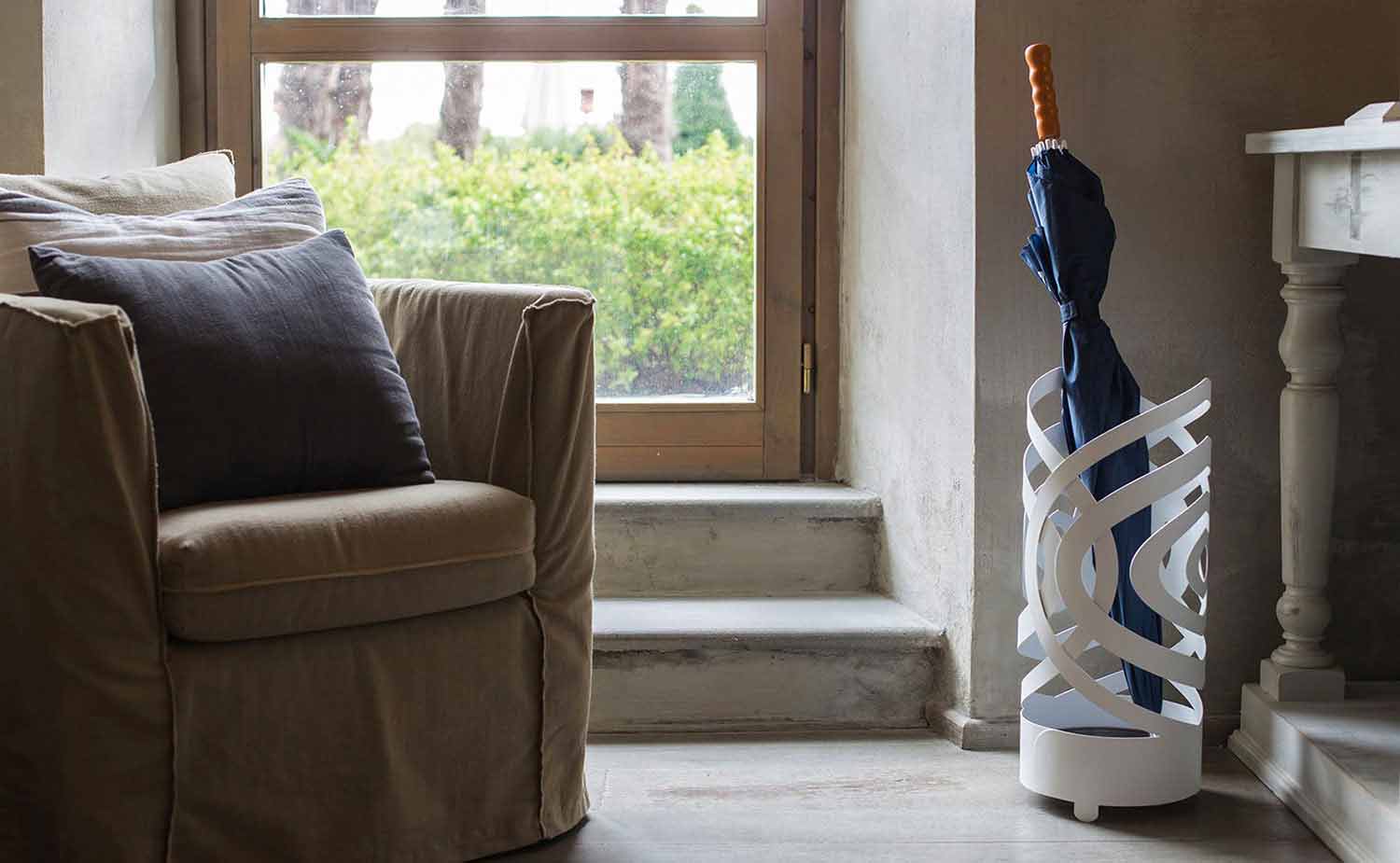 Paraplystativ til moderne design produceret i Italien håndlavet i hvidt, beige eller mudderjern.