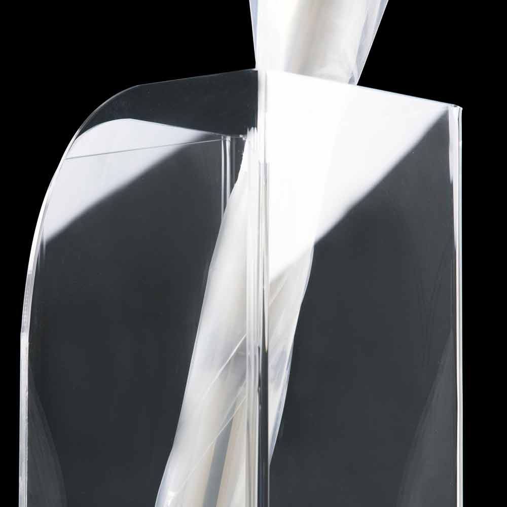 Paraplystativet i gennemsigtigt plexiglas er kendetegnet ved dets minimale og fuldstændigt glatte design uden dikkedarer eller dekorationer for at fremhæve de rene og enkle linjer med en rustfri stålbase.