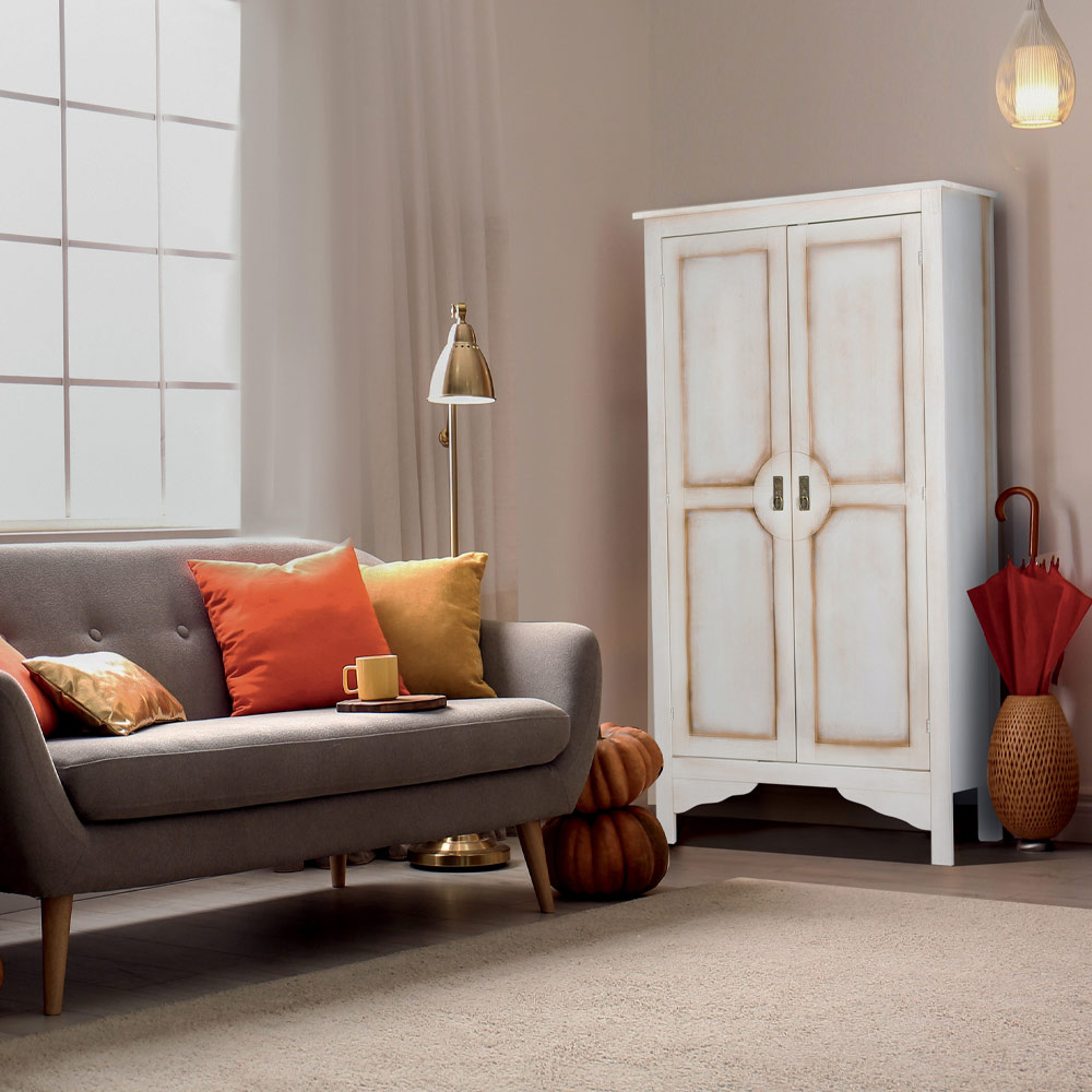 FORHOLDSREGLER: I betragtning af at træ er et levende materiale og følsomt over for fugt, skal der lægges særlig vægt på at placere møblerne inde i boliger med puds, der har været hvilet og tørt i mindst 1 måned. Vi anbefaler dog at lade være med et mellemrum på mindst 5 centimeter fra væggen i nogle måneder og lufte rummene ofte.