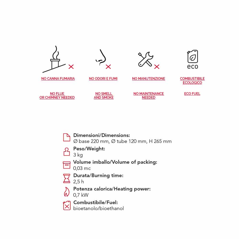 Vigtigste er kendetegnende for denne pejs ligger i dets karakteristiske for ikke producerer røg og damp, ud over ikke kræve skorsten. Økologisk pejs, der ikke behøver vedligeholdelse, som drives med bioethanol, en vedvarende energikilde.