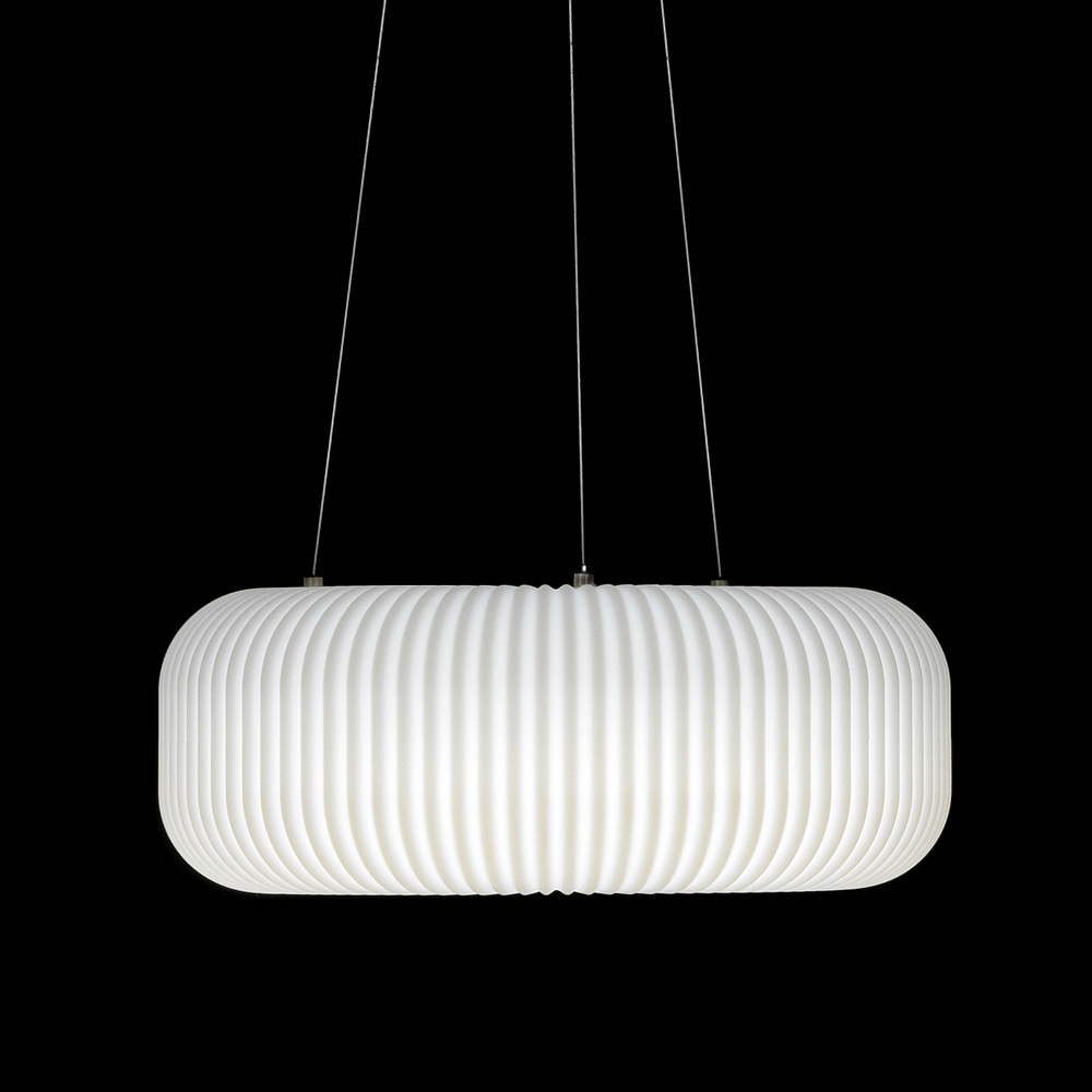 Denne lampe skiller sig ud for sit elegante og minimalistiske design, som kombinerer tynde metalkabler med en organisk formet plastdiffusor. Plasten, der er bearbejdet med plisserede detaljer, tilføjer et strejf af visuel raffinement og hjælper med at sprede lyset blødt og jævnt, hvilket skaber en indbydende og afslappende atmosfære.