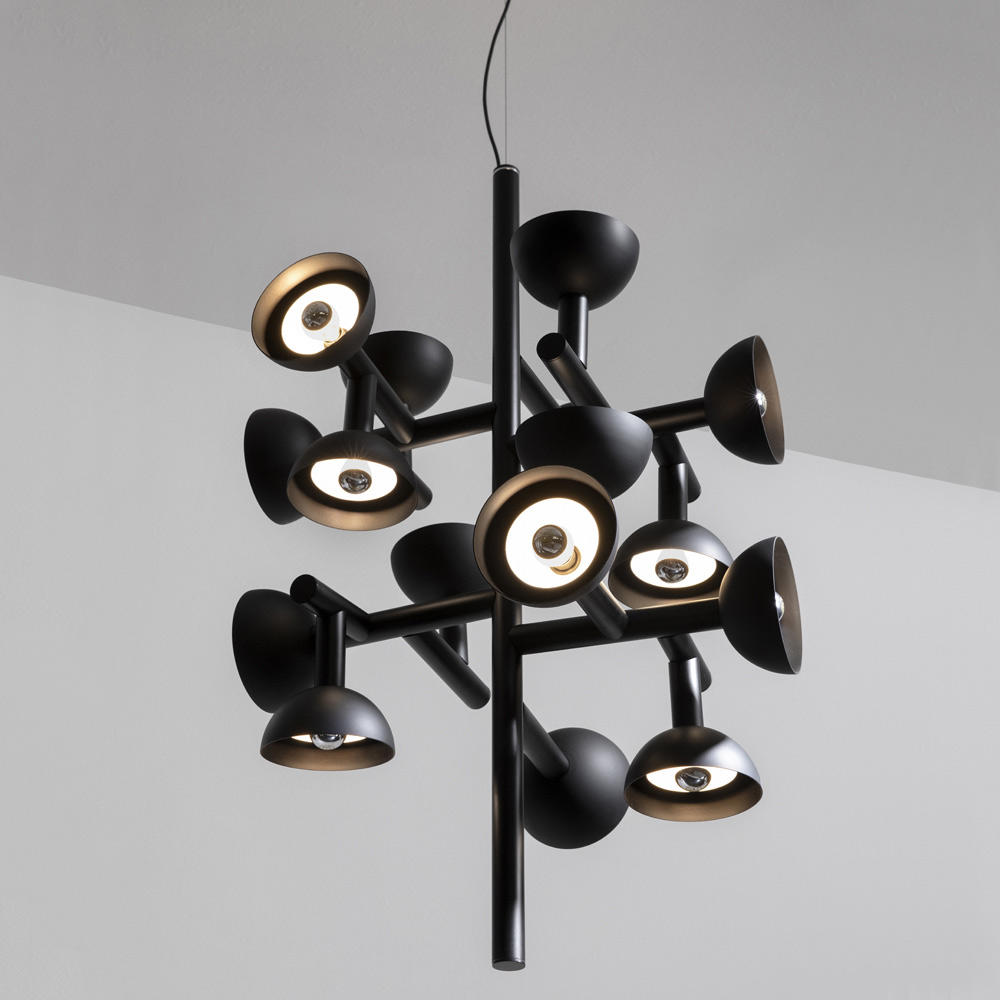 Lampen er lavet med en aluminiumsstruktur af to finish til et helt italiensk design, som gennem ukonventionelle eksperimenter og den kontinuerlige forskning mellem tradition og modernitet er i stand til at forbløffe, vove og begejstre, så du kan udtrykke dine følelser gennem en original og personlig dekorativ brug af lys.