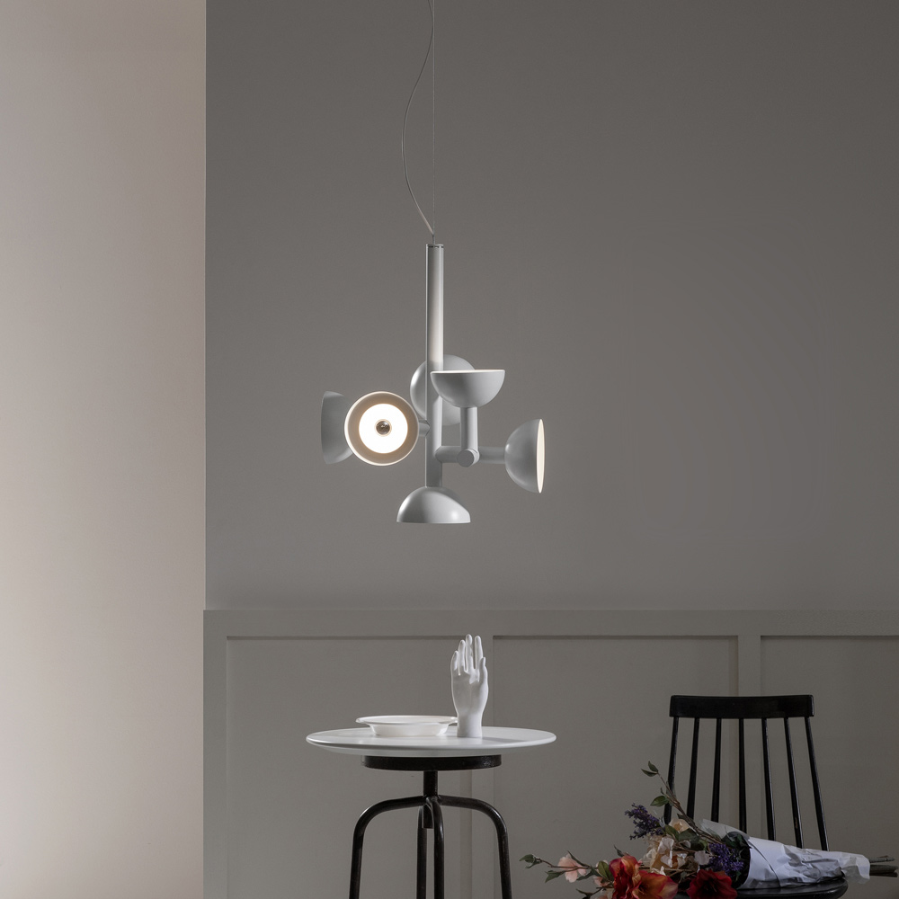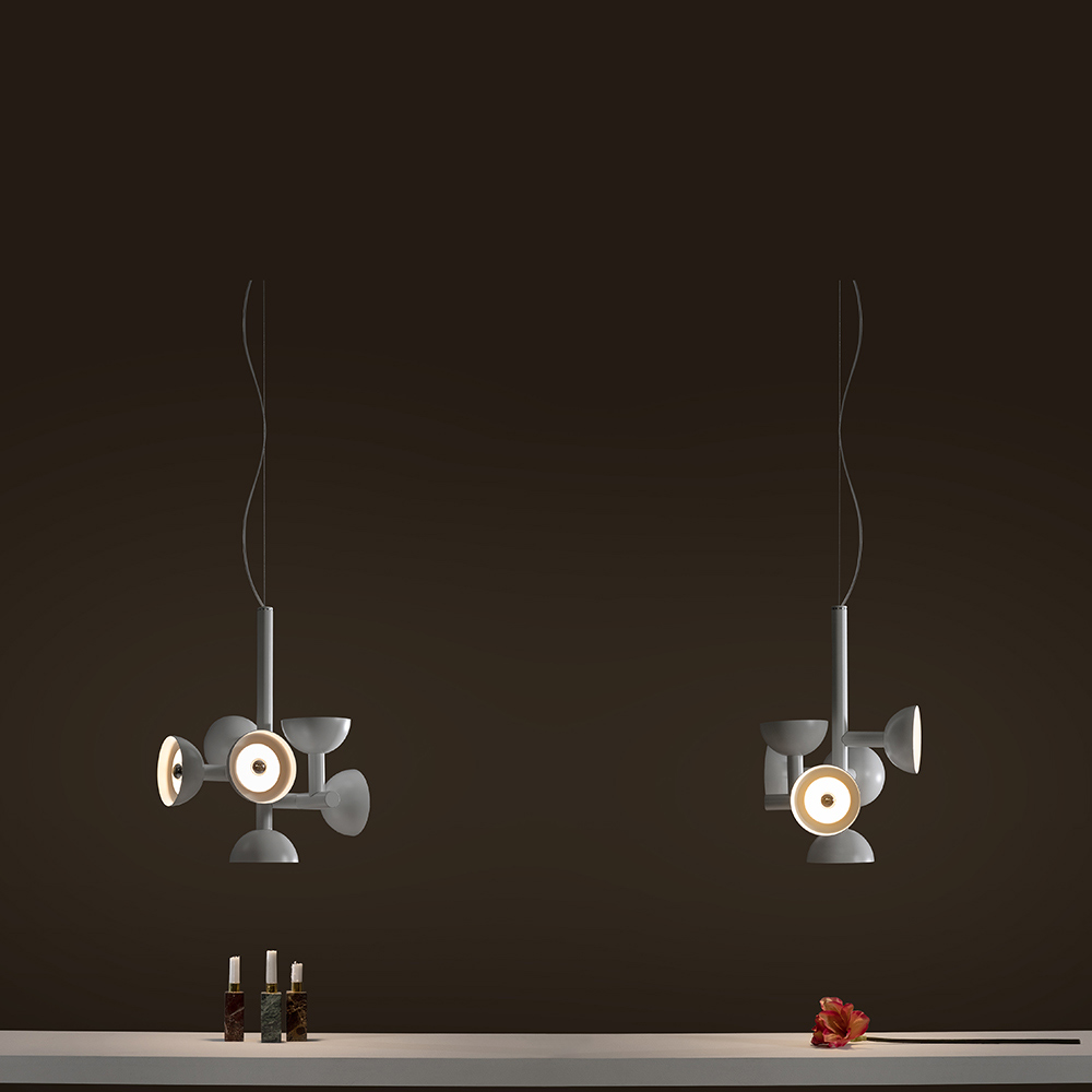 Lampen er lavet med en aluminiumsstruktur af to finish til et helt italiensk design, som gennem ukonventionelle eksperimenter og den kontinuerlige forskning mellem tradition og modernitet er i stand til at forbløffe, vove og begejstre, så du kan udtrykke dine følelser gennem en original og personlig dekorativ brug af lys.